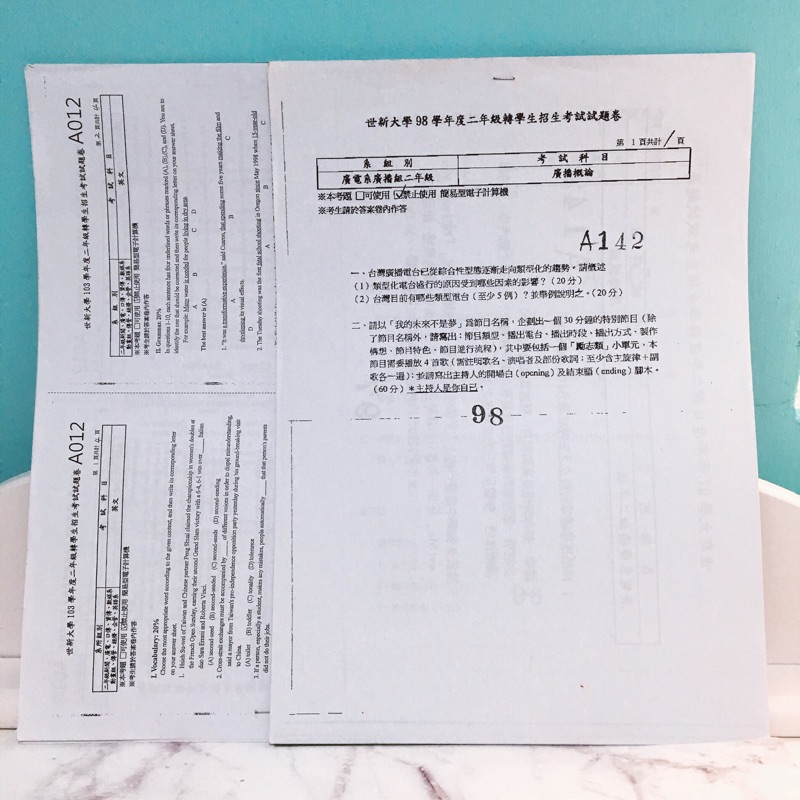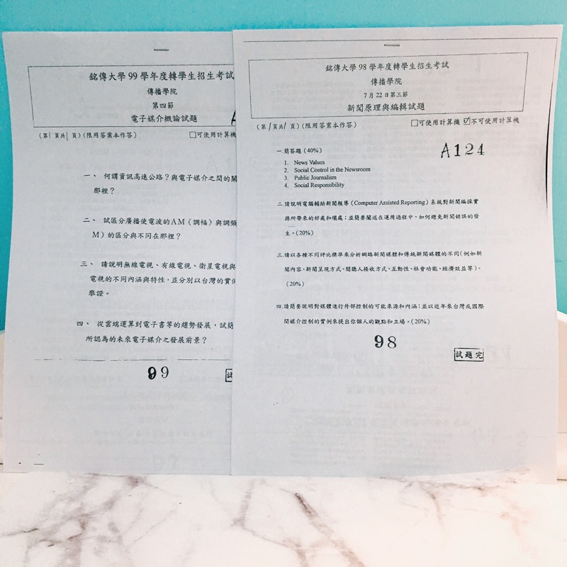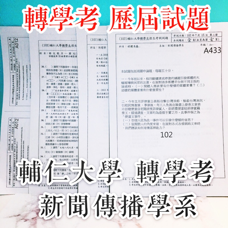 輔大 世新 銘傳 傳播轉學考 歷屆試題+榜生解答 新聞傳播學系 廣電系 傳播學院 考古題 大學轉學考 輔仁大學
