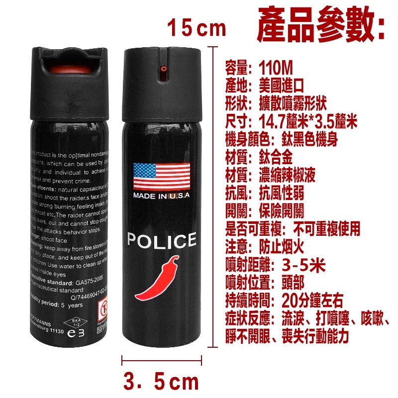 辣椒水【台灣出貨】防身噴霧 防狼噴霧劑(噴射3-5米辣度300萬)辣椒水噴霧 防身辣椒水 美國進口 鎮暴型防狼噴霧