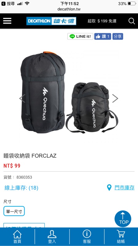 迪卡儂 睡袋壓縮袋 收納袋 近全新