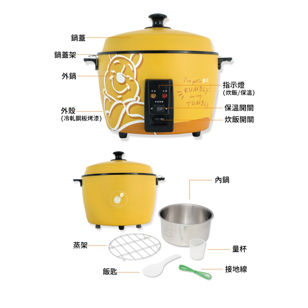 迪士尼小熊維尼系列 11人份 304不鏽鋼電鍋 活力橘限定款 WRC-10 主機一年保固