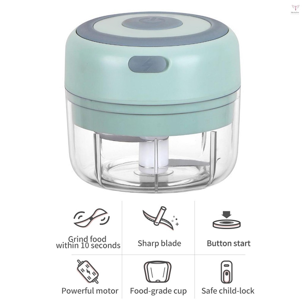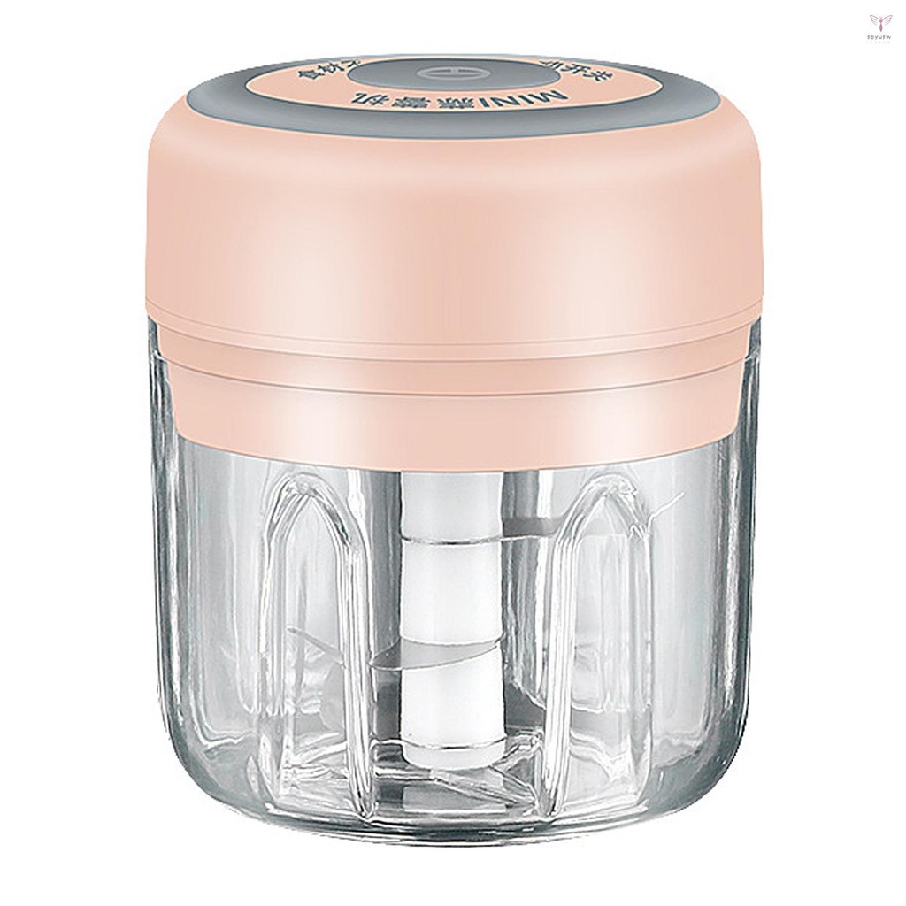 迷你大蒜研磨機電動大蒜切碎機無繩食品水果蔬菜攪拌機廚房小工具 250 毫升 USB 可充電