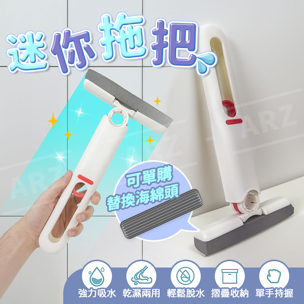 迷你小拖把 擦玻璃神器【ARZ】【E113】免手洗拖把 廚房 車用 膠棉拖把 迷你拖把 抹布 懶人拖 海綿頭 吸水拖把