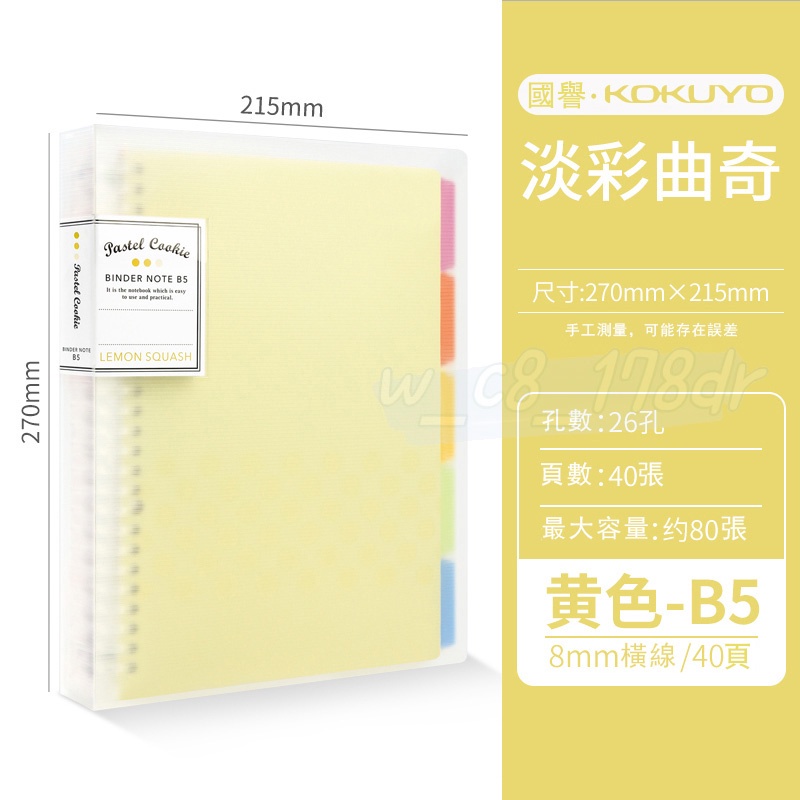 送國譽替芯1本 日本KOKUYO國譽 活頁本 淡彩曲奇筆記本 記事本 可拆卸 扣環外殼 A5活頁夾B5活頁夾