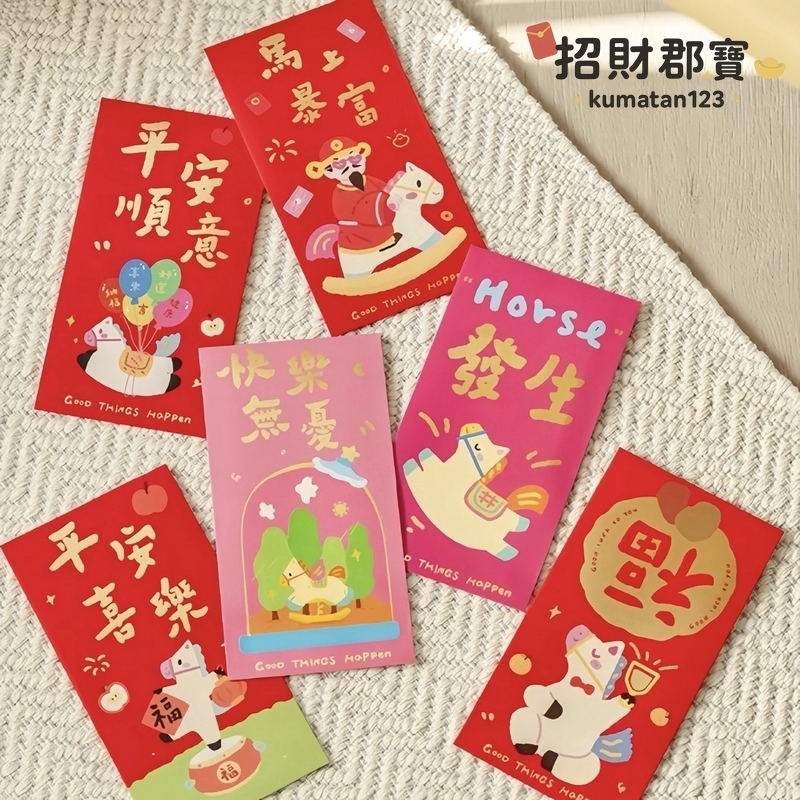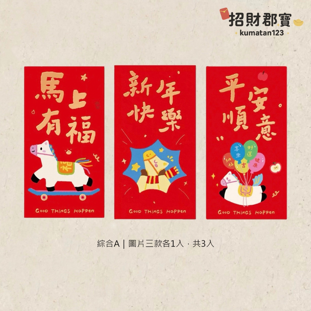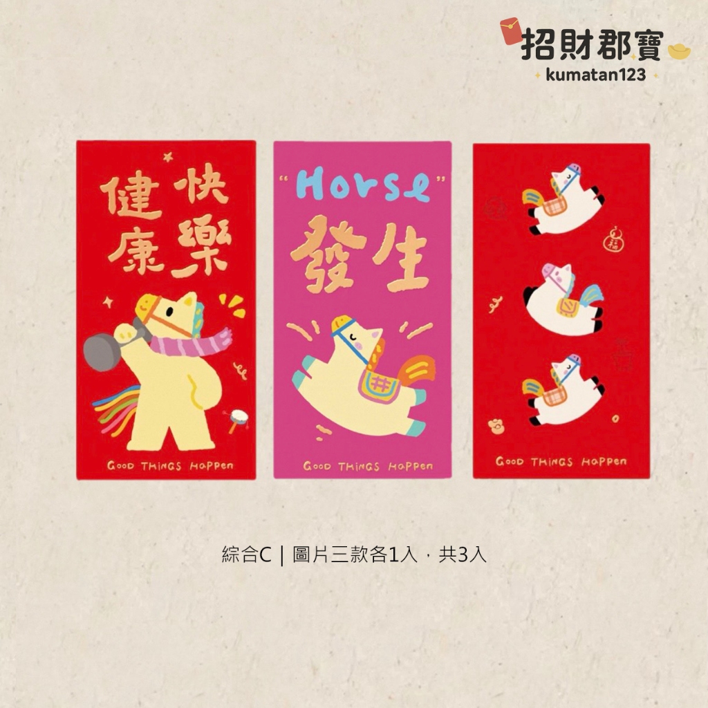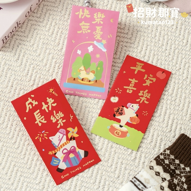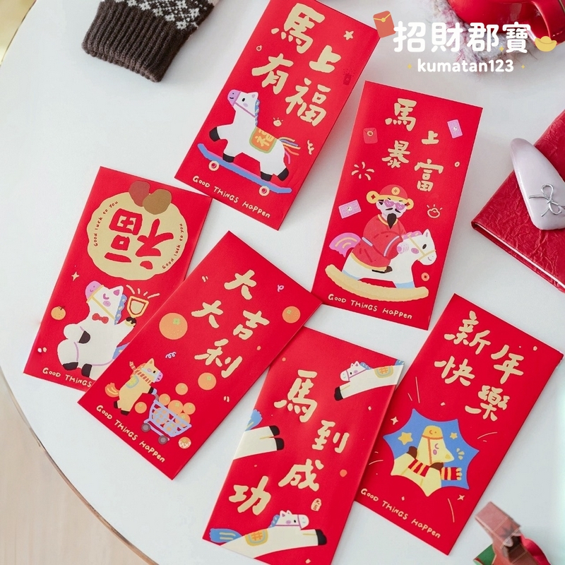 現貨|售完無補|熱賣款 2026年 馬年🐴 創意設計 燙金文字圖案 新年 春節 紅包 過年必備 紅包袋 每包3入