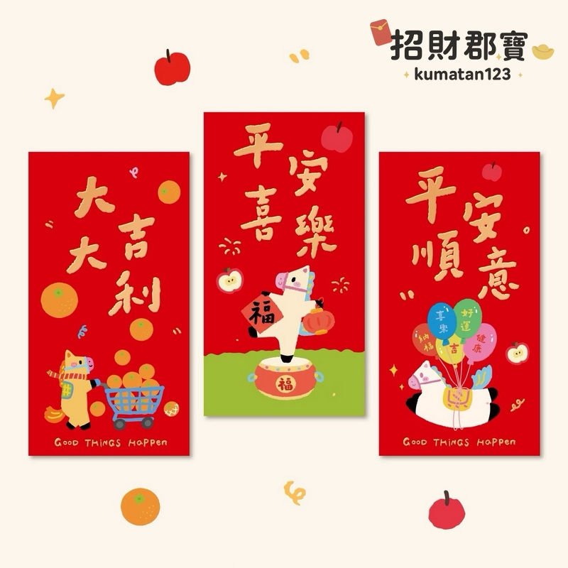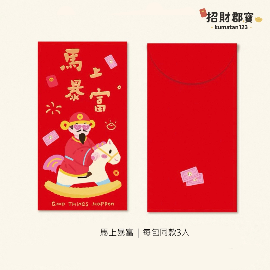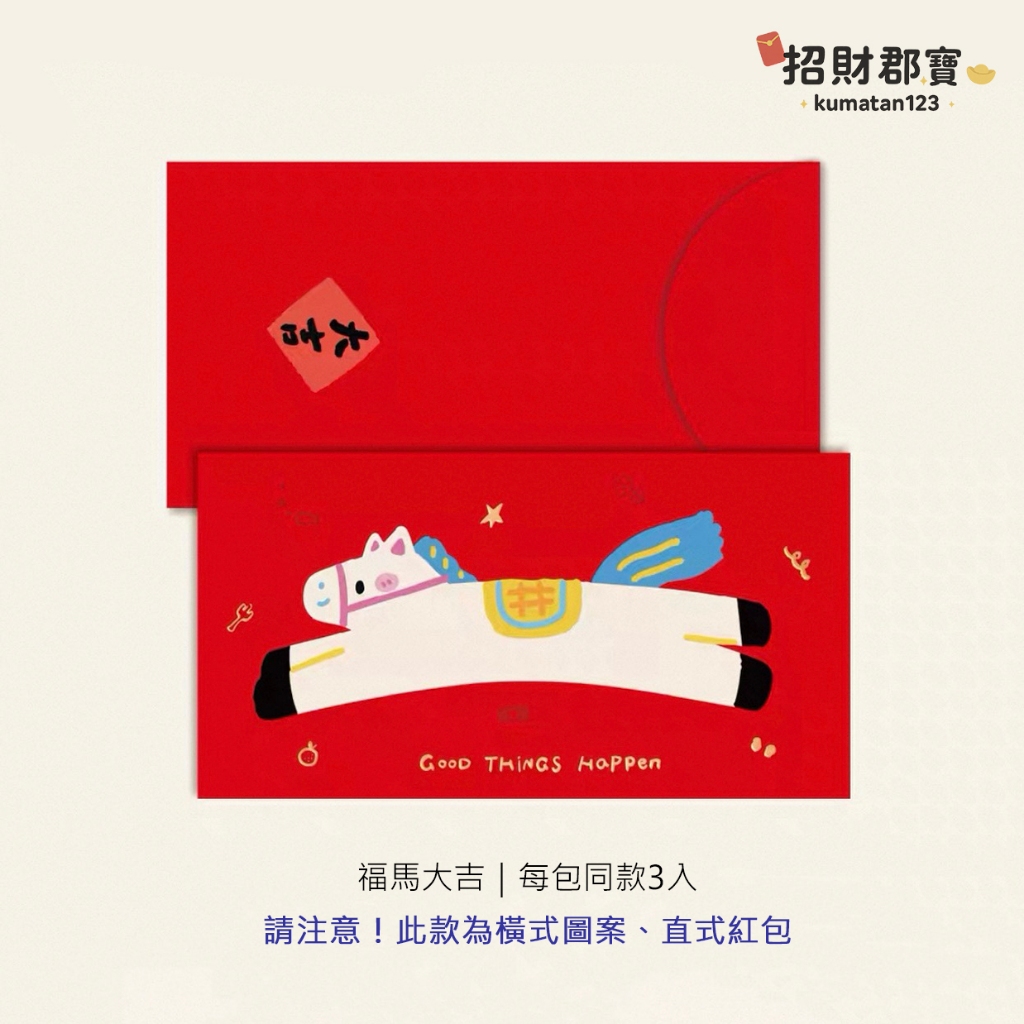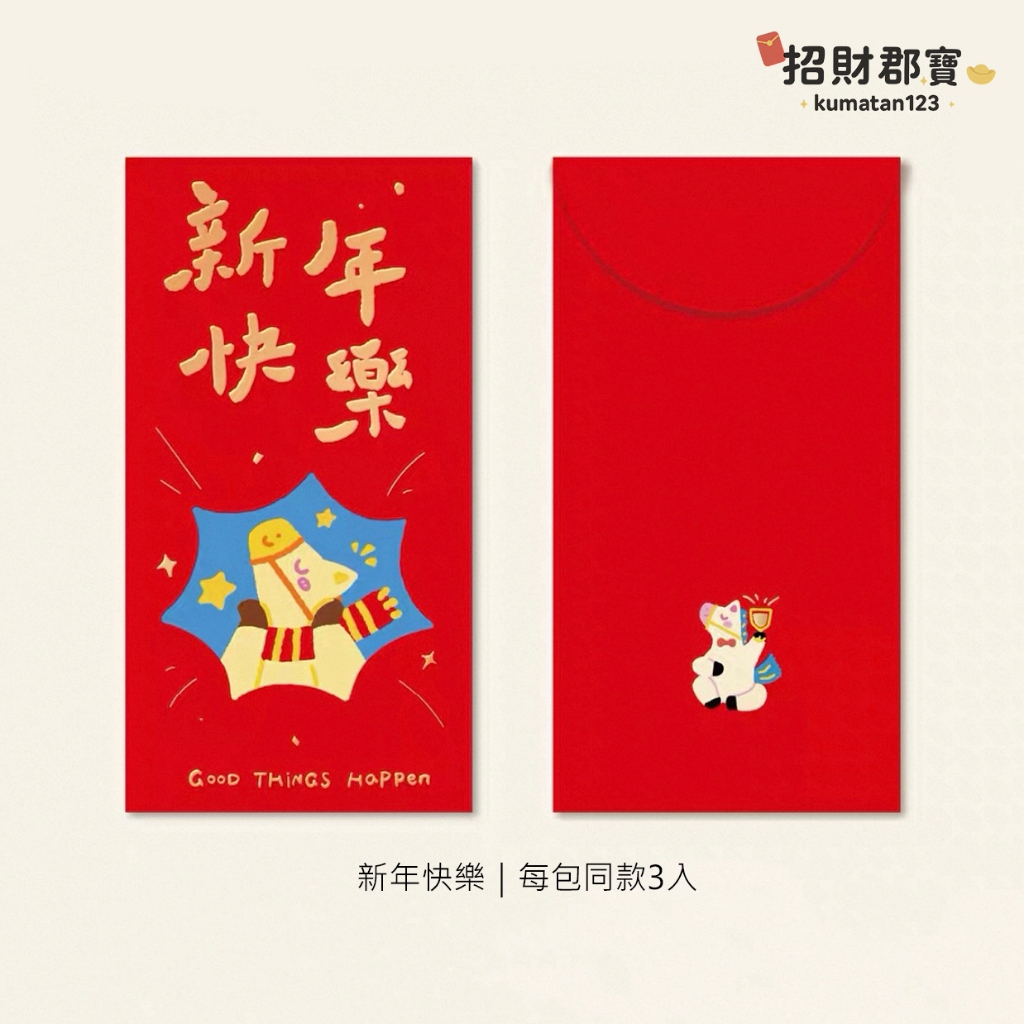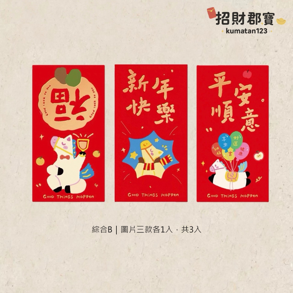 現貨|售完無補|熱賣款 2026年 馬年🐴 創意設計 燙金文字圖案 新年 春節 紅包 過年必備 紅包袋 每包3入