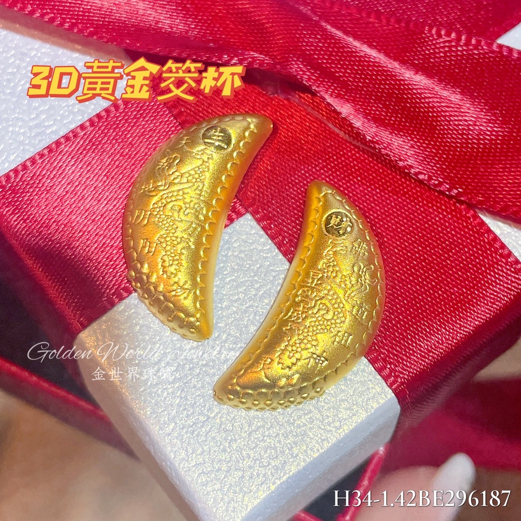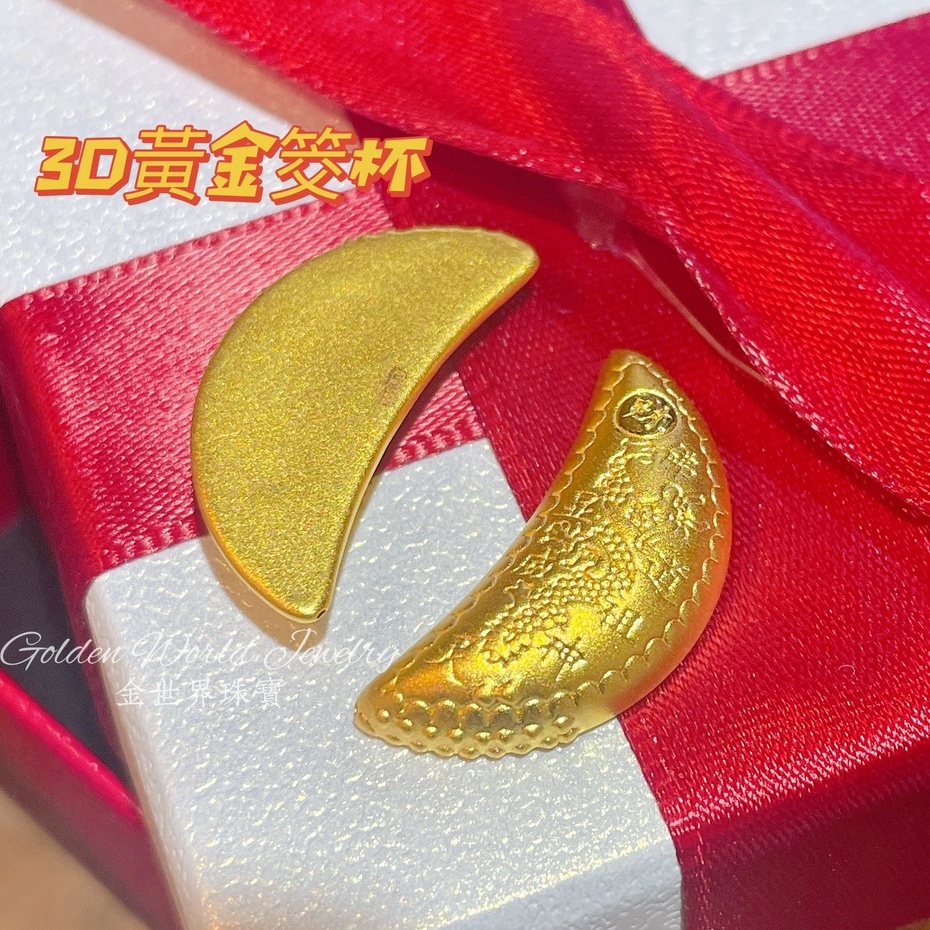 金世界珠寶|黃金9999《黃金筊杯擺件》擲杯 聖杯 3D 黃金擺件 可愛 趣味 擺件 神明 送禮 特別 收藏