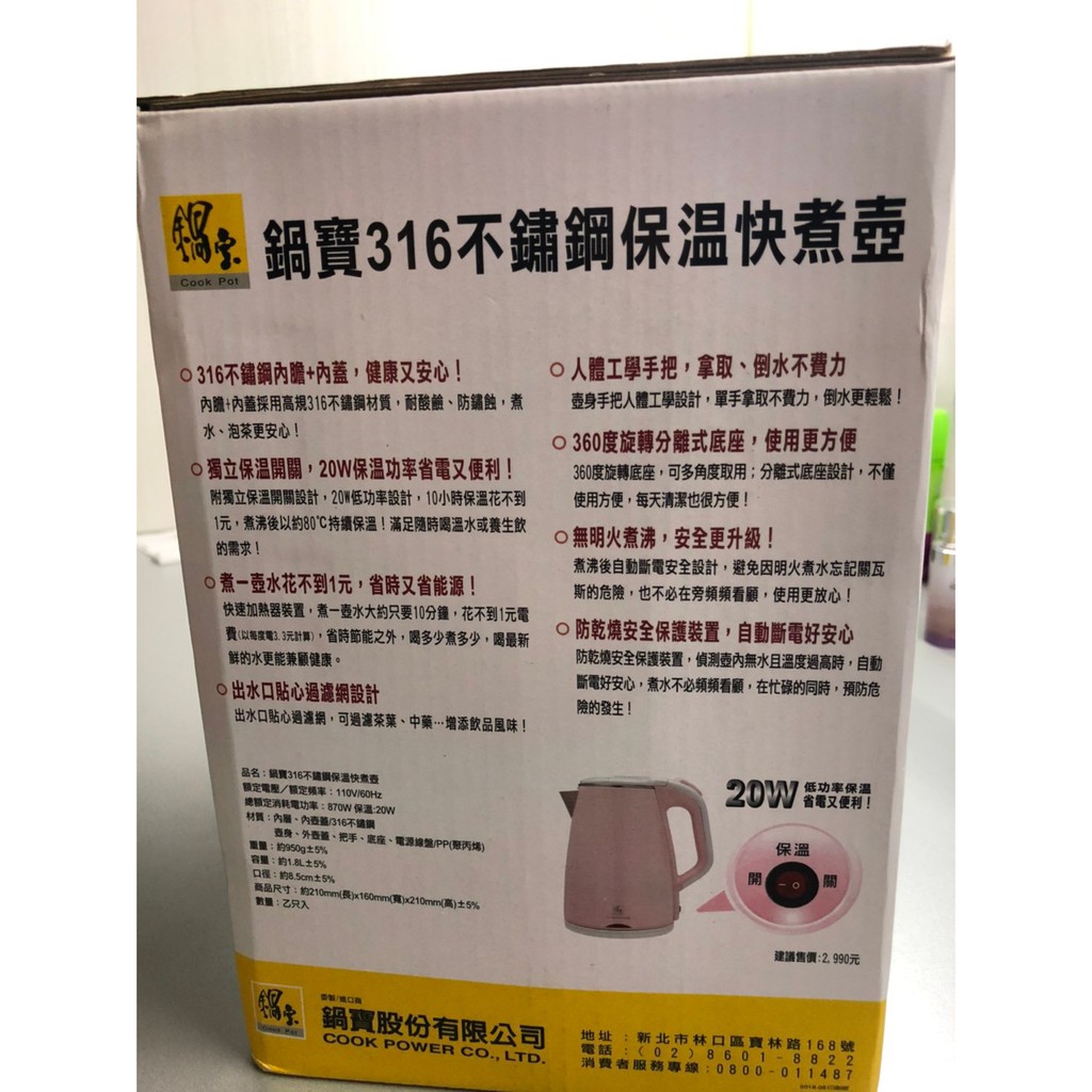 鍋寶 316 不鏽鋼 保溫 快煮壺 1.8L 粉色