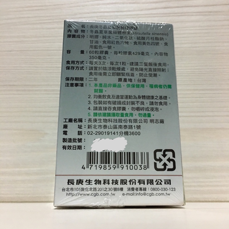 長庚 冬蟲夏草菌絲體 膠囊 60粒