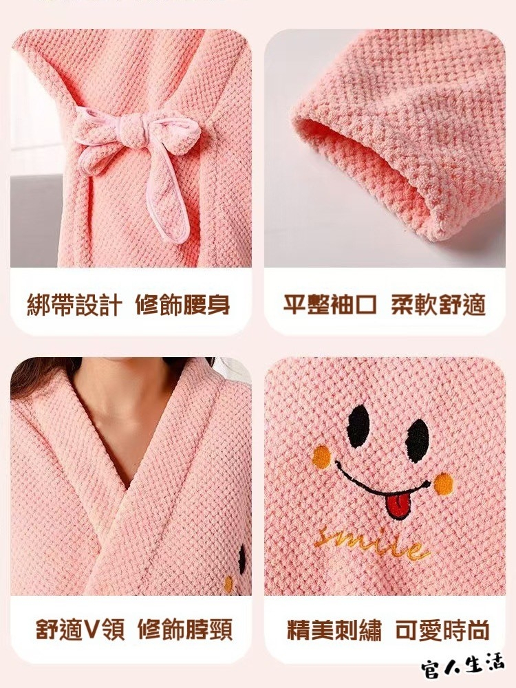 長袖版浴裙 TS10 微笑版 長袖浴袍 女生浴裙 可穿式浴巾 吸水浴裙 珊瑚絨浴裙 強力吸水 浴巾加大 胖胖可穿