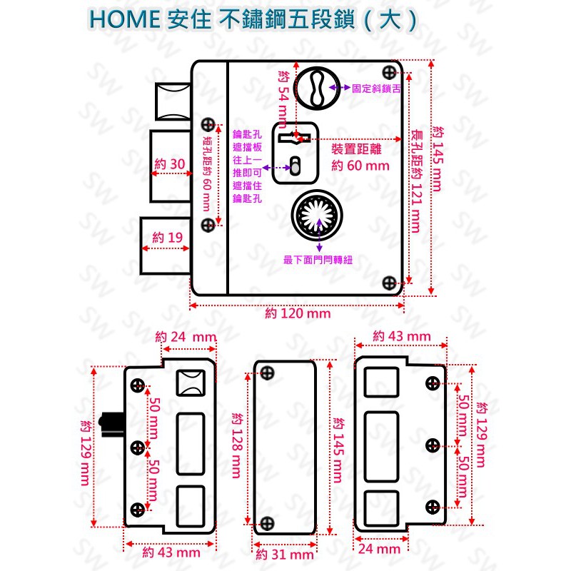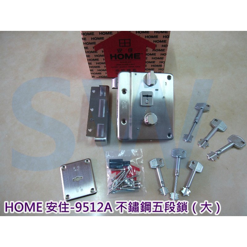 門鎖 防盜鎖 大門鎖 HOME 不鏽鋼鐵門鎖 五段鎖 六把鑰匙 大安住 9512 白鐵葉片式匣《昇瑋五金》