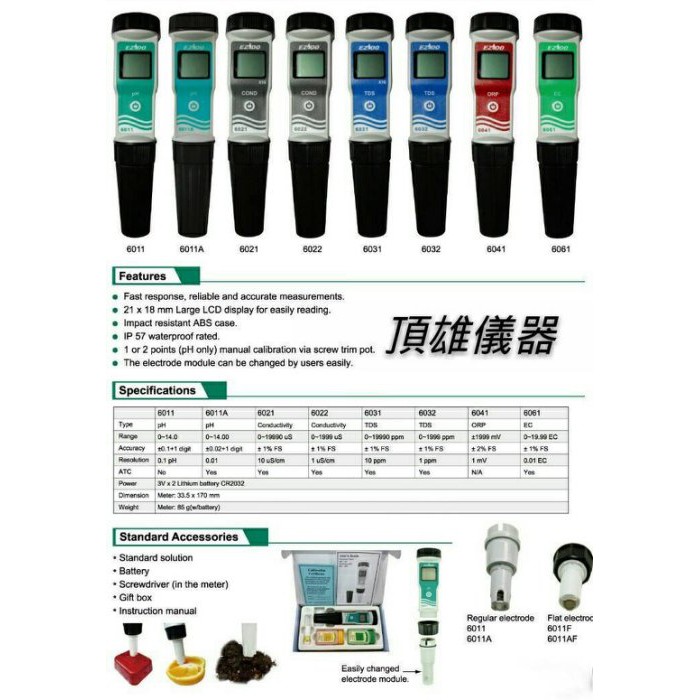 防水筆型PH6011F PH酸鹼度計 PH meter PH酸鹼測試筆 PH酸鹼值 酸鹼測定 水質檢測 頂雄儀器(台製)