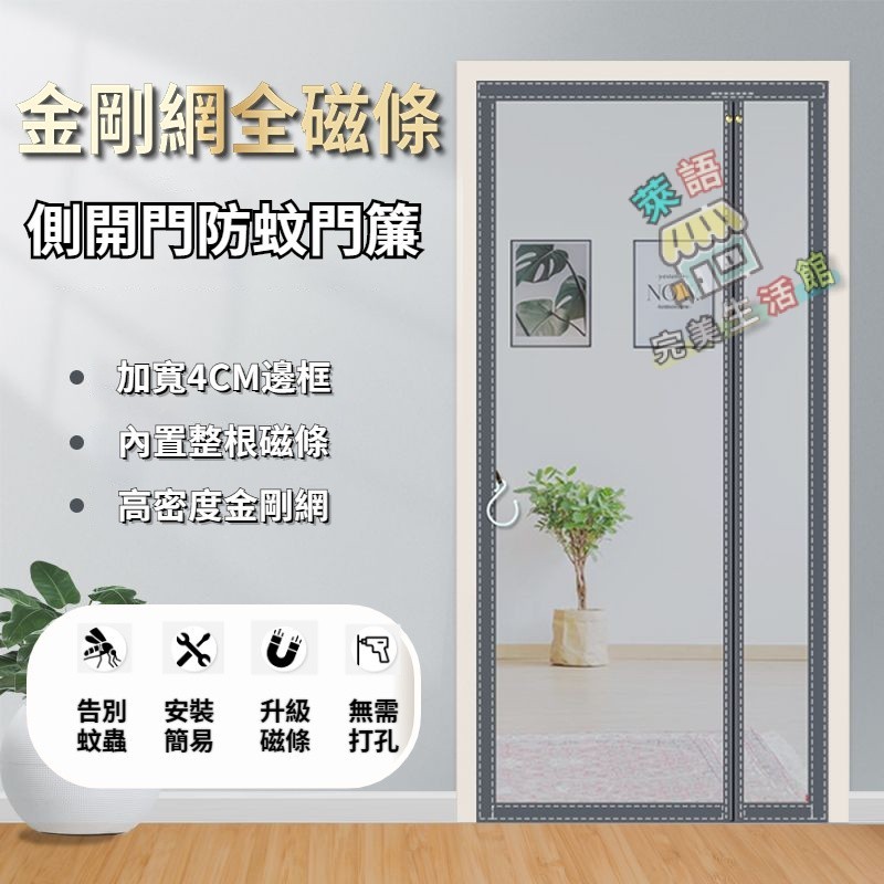 防蚊門簾 加寬全磁條門簾 夏季側開門簾 魔鬼氈門簾 雙面安裝 金剛網門簾 傢用自吸全磁側開加密紗網 防蠅蟲紗門紗窗