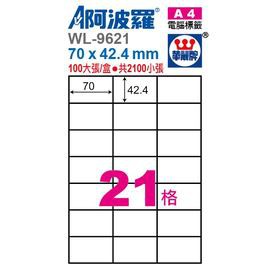 阿波羅A4影印、雷射、噴墨三用紙(電腦標籤)WL-9621 100入/盒