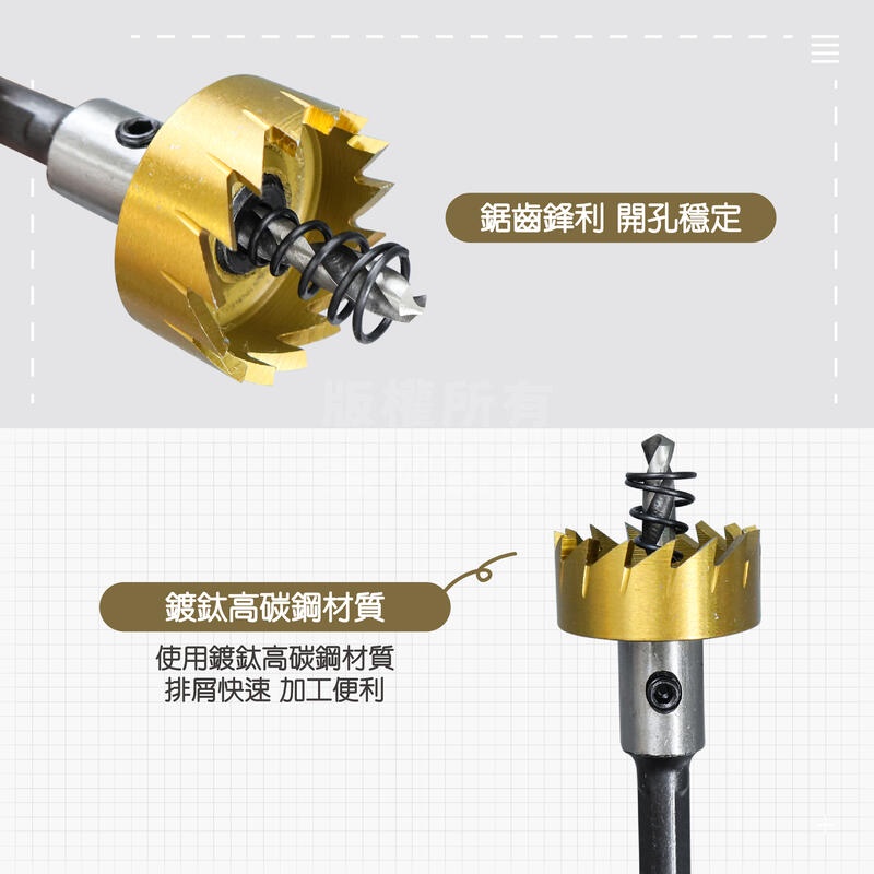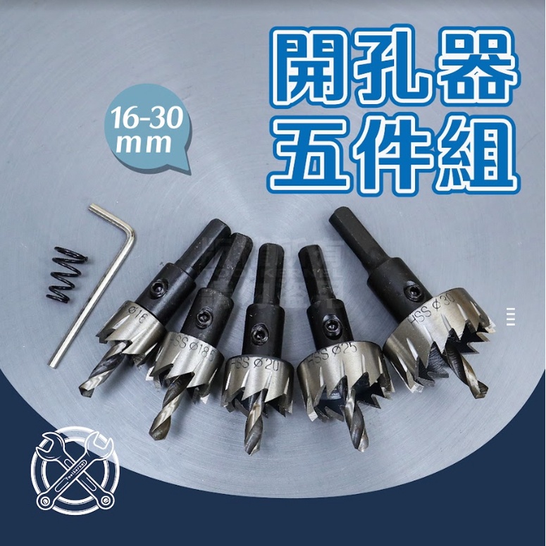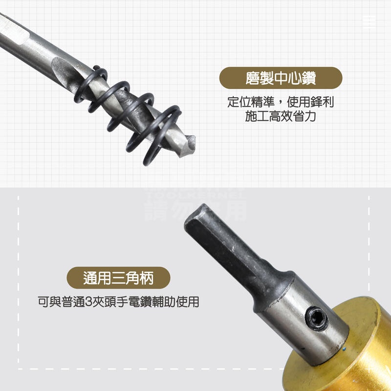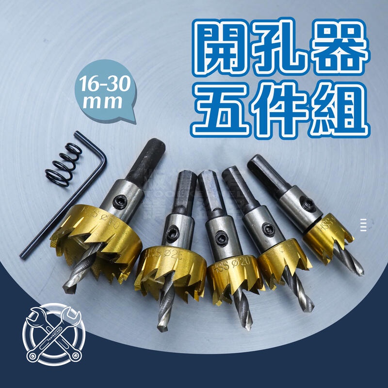 附發票「工具仁」鍍鈦開孔器 五件組 開孔器 16mm-30mm 三角柄 擴孔器 圓穴鑽 圓穴鋸 電鑽擴孔 圓孔器 洗孔