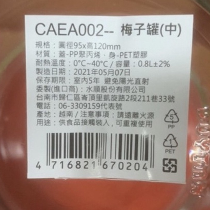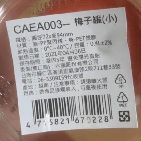 附發票 HOUSE好室喵梅子罐 小中大 塑膠罐 收納罐 醃漬罐 萬用罐 儲物罐 透明罐 送禮罐 螺絲桶