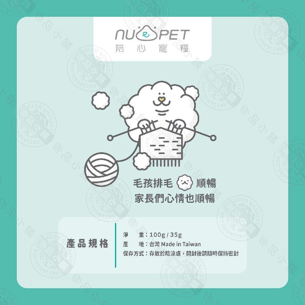 陪心寵糧 NU4PET 陪心機能 PLUS 排毛粉 鮮魚口味 35g / 100g 犬貓適用 寵物營養品