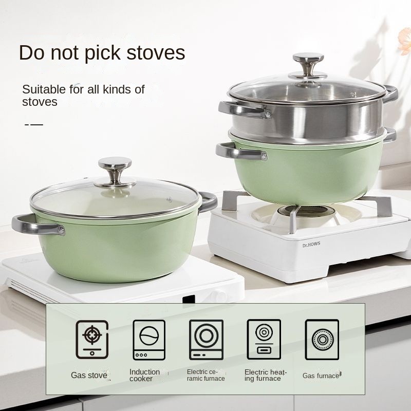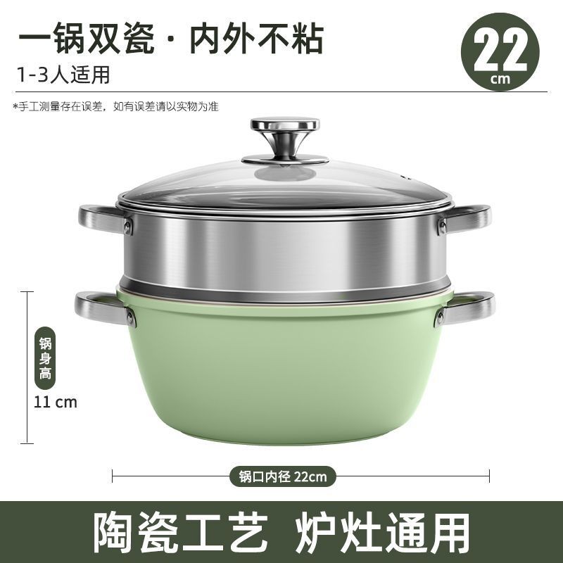 陶瓷不粘湯鍋燉鍋套裝組閤家用多功能鍋蒸煮一體電磁爐燃氣竈通用