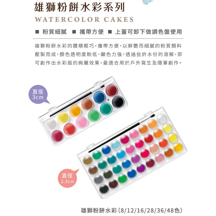 雄獅 WCC 8色、12色、16色、28色、36色、48色 粉餅水彩 水彩