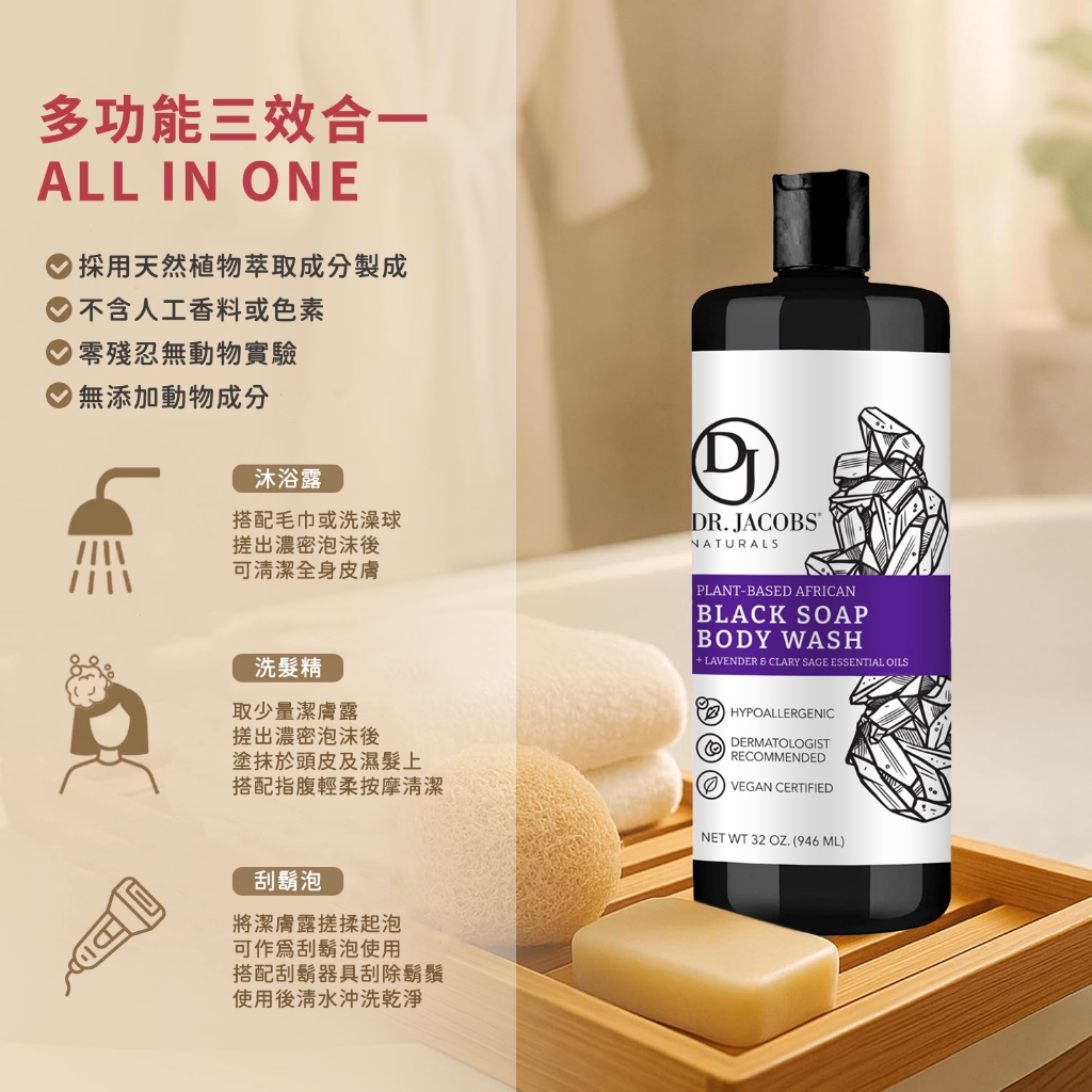 《促銷》Dr.Jacobs Naturals 雅各博士 多功能非洲黑皂潔膚露 946ml 洗髮 沐浴露 【套套先生】