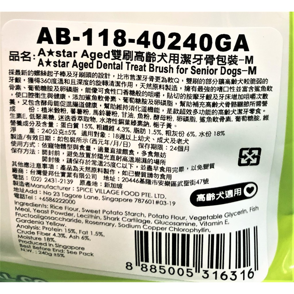 雙刷高齡犬用 潔牙骨 M號/240克 成犬 老犬 雙刷頭 A-star Bones Aged~附發票🌼寵物巿集🌼