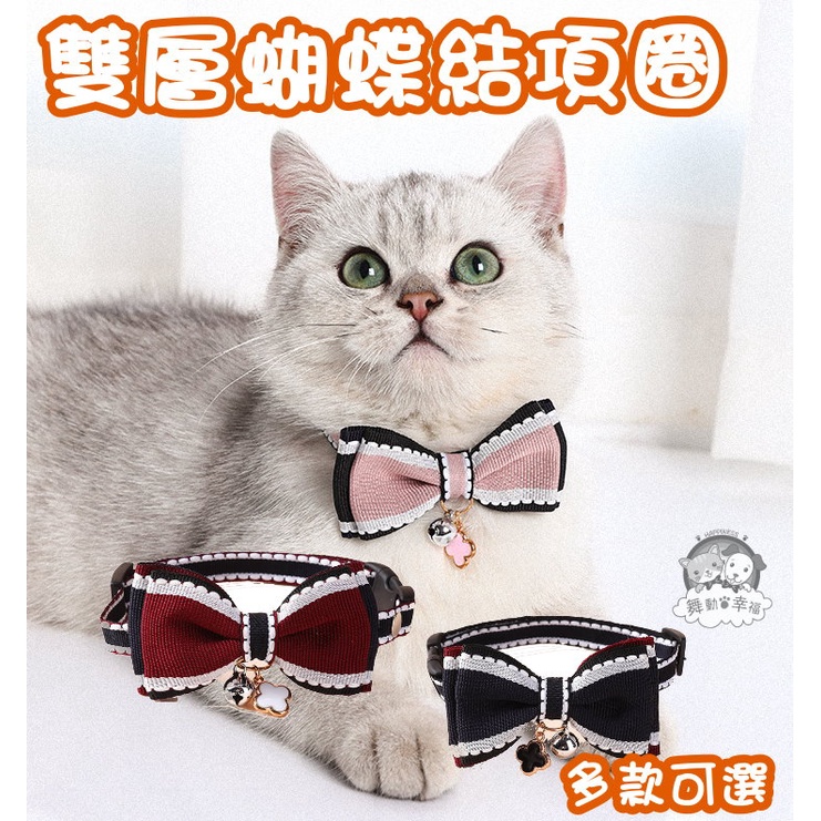 雙層蝴蝶結項圈 寵物項圈 蝴蝶結項圈 格子項圈 貓項圈 狗項圈 寵物項圈 頸圈 *舞動幸福*