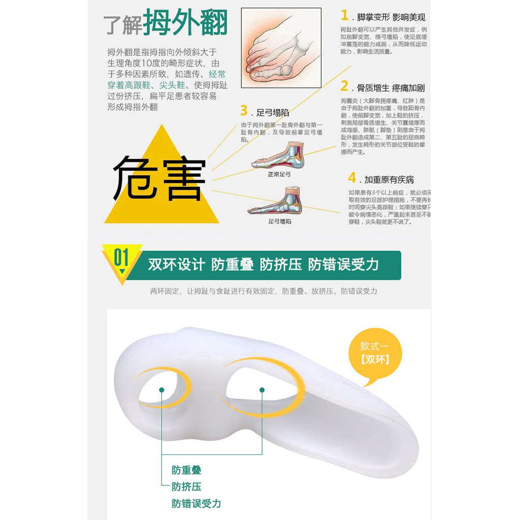 雙環加固型拇指外翻矽膠矯正器(2色可選/一雙入) 另售 硅膠足弓墊 扁平足矯正足弓支撐矯正減震緩壓墊(一雙入)
