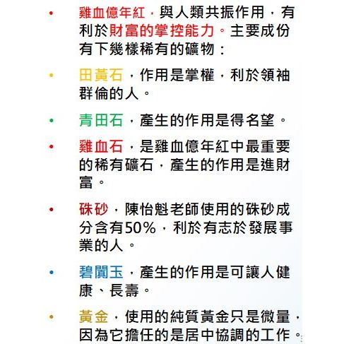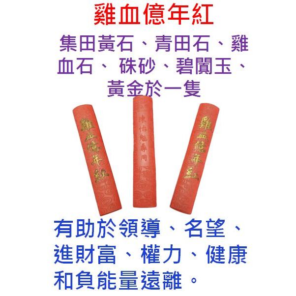 雞血億年紅三支,是一種礦物精華聚合體。開運、避邪、強化個人能量能量,帶來好財運。