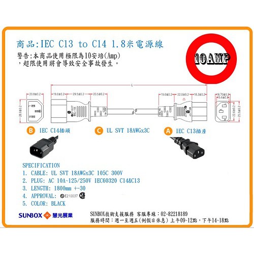 電腦電源線 1.8米10安培 C13 轉 C14(1.8M IEC C13/C14-10A)