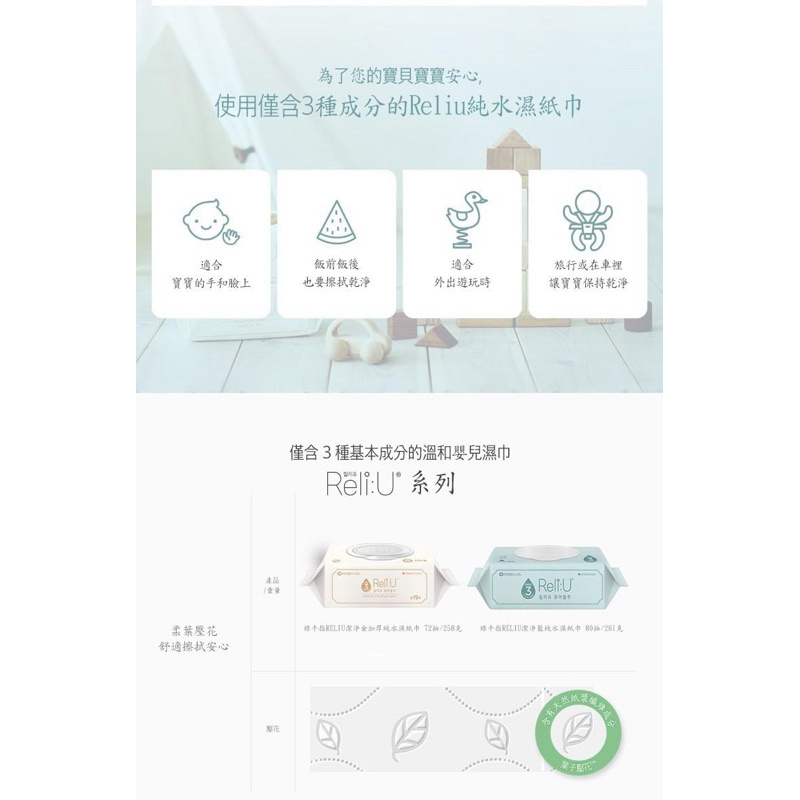 韓國綠手指-ReliU潔淨金純水加厚濕紙巾(72抽/箱購/10包)適用於寶寶手口屁屁