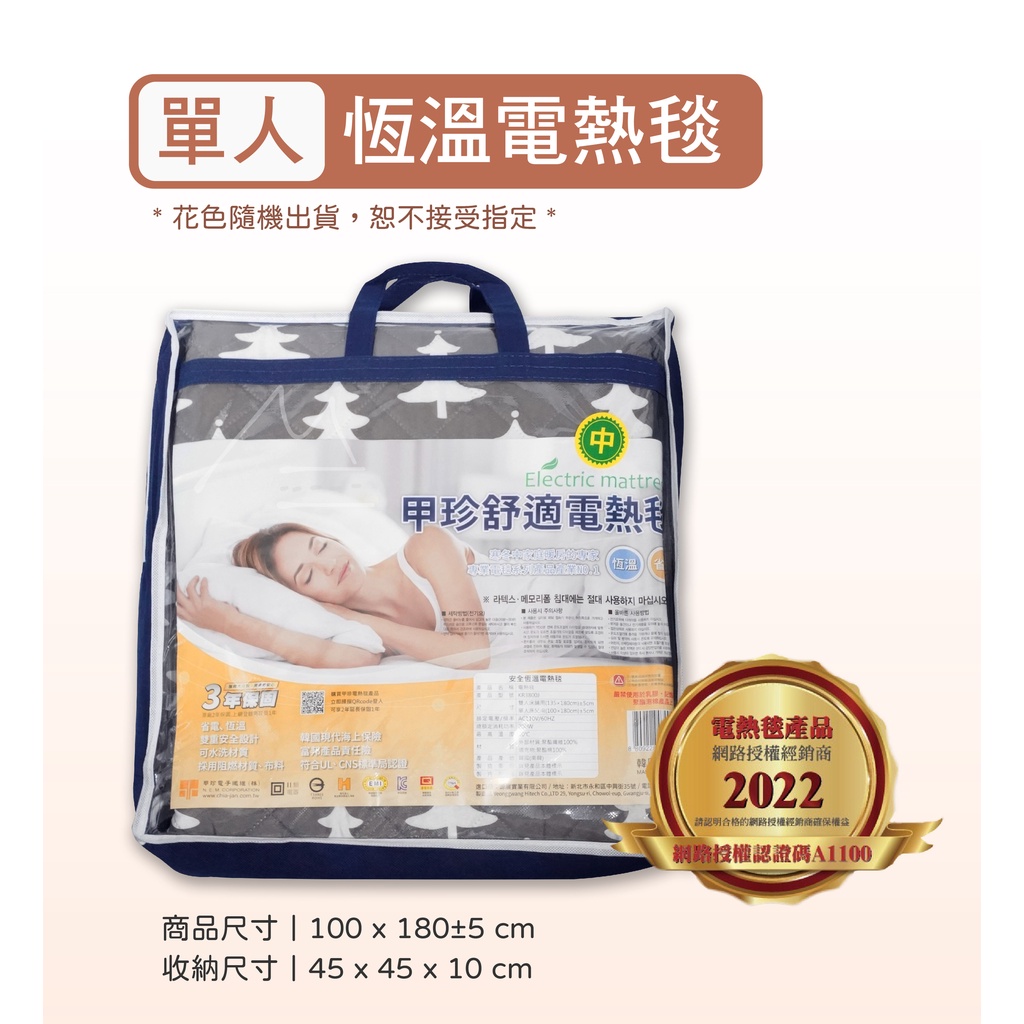 韓國製 七段恆溫 電毯 冬天必備 露營 免運 台灣賣家 甲珍恆溫電熱毯 KR3800J 單人 雙人 保暖 保固2+1年