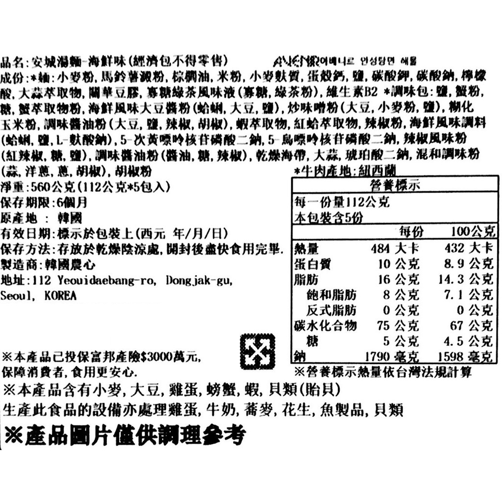 韓國 農心 安城湯麵 超值包 泡麵 拉麵 安城海鮮 袋裝 5入