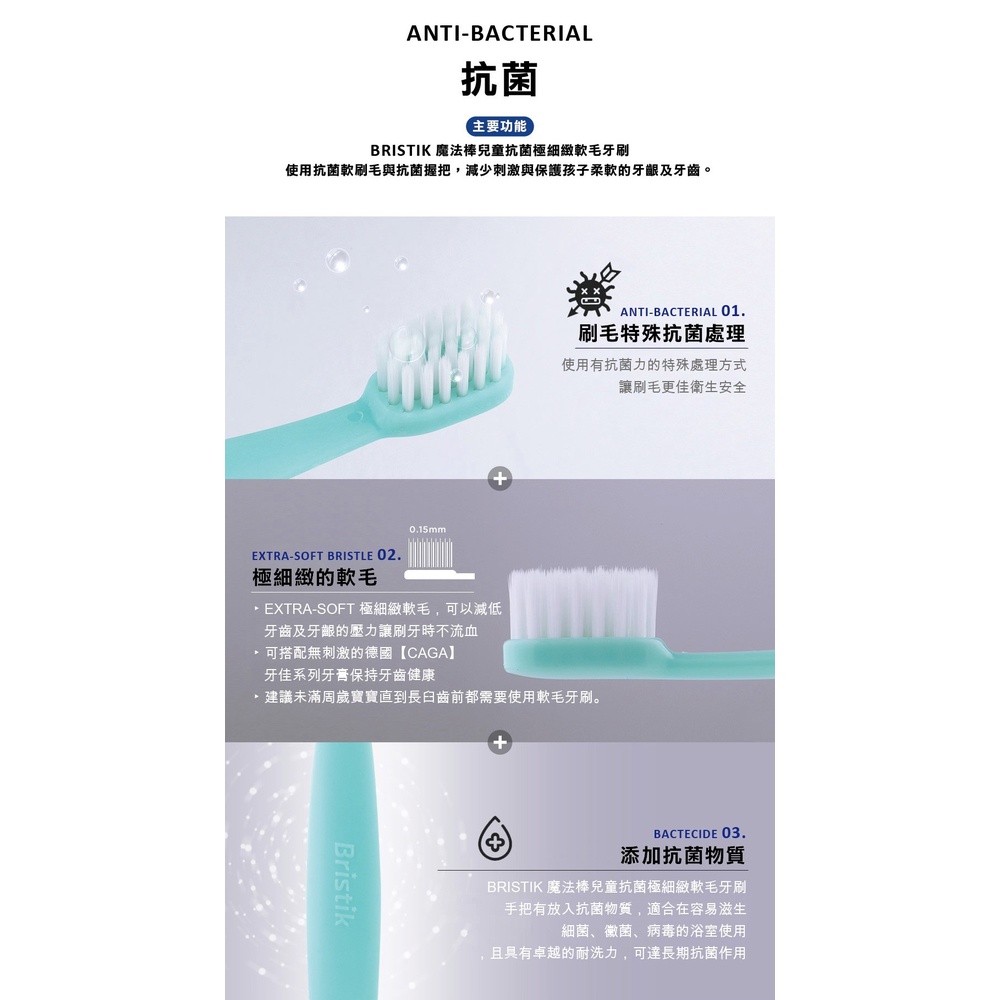 韓國 Bristik 魔法棒 兒童抗菌極細緻軟毛牙刷 (寶寶款) 寶寶牙刷