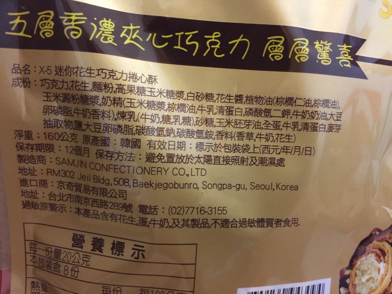 韓國 Samjin X-5 迷你花生巧克力捲心酥 巧克力捲心棒 巧克力棒152g X5花生巧克力捲心酥