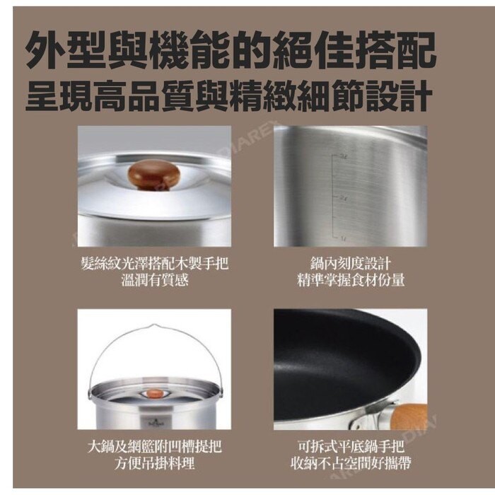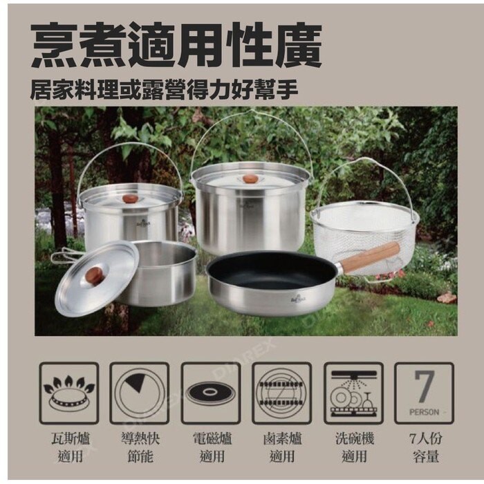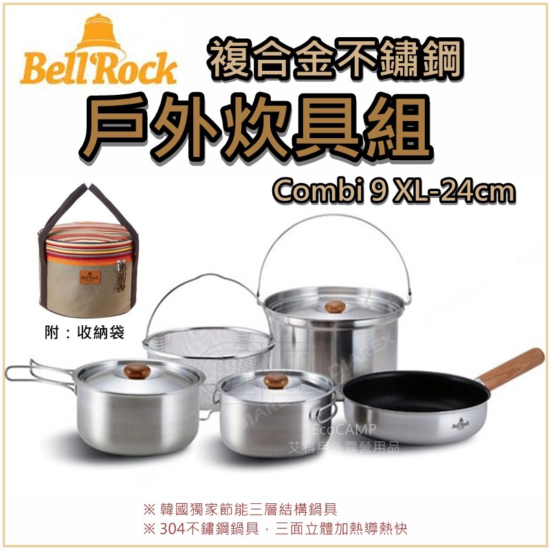 韓國BELL ROCK複合金不鏽鋼戶外炊具組 鍋具組 Combi 9 XL-24cm/不沾鍋9件組