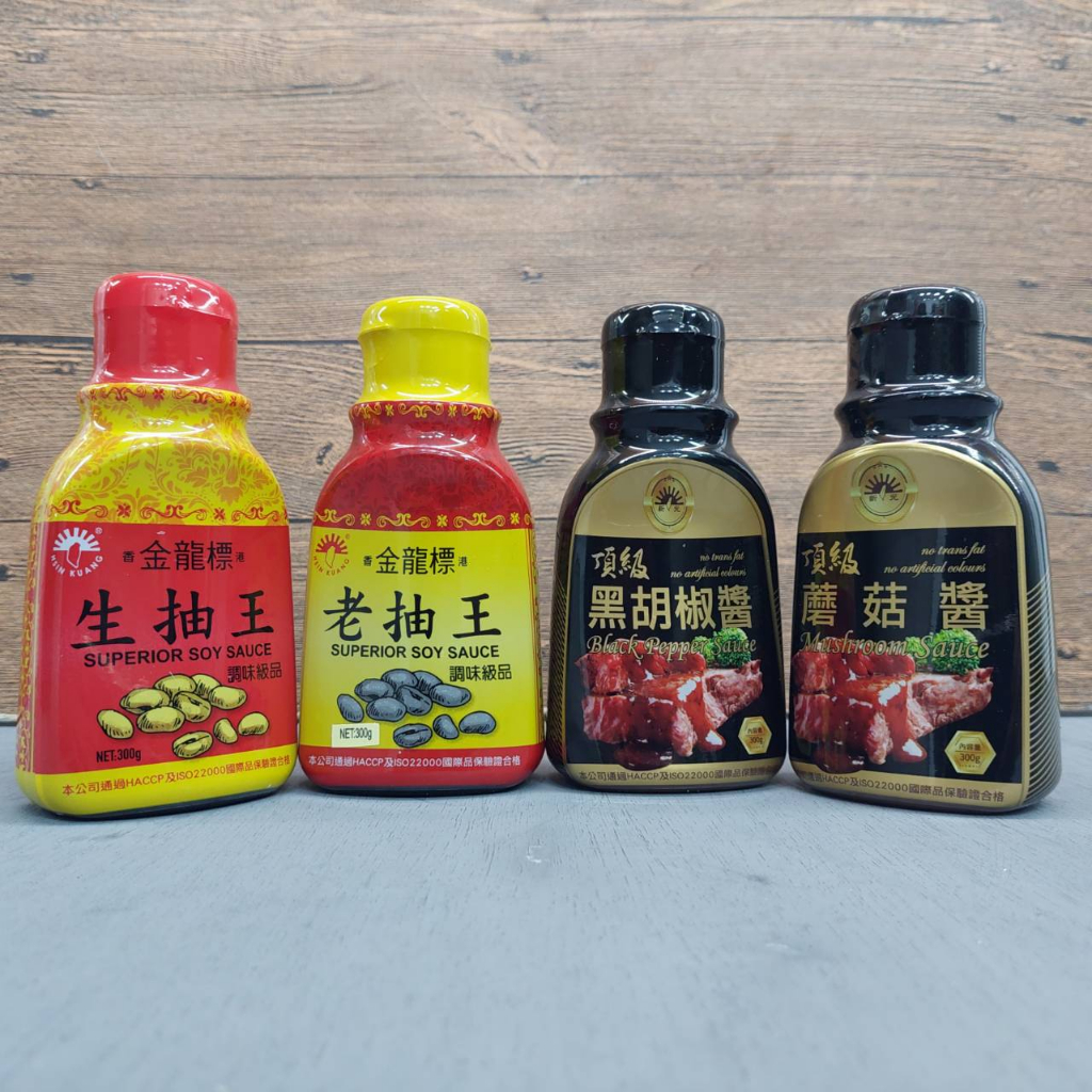 頂級黑胡椒醬 頂級蘑菇醬 金龍標老抽王 金龍標生抽王 頂級素黑胡椒醬 頂級素蘑菇醬 調味料 燉 煲 沾 醃 新光洋菜