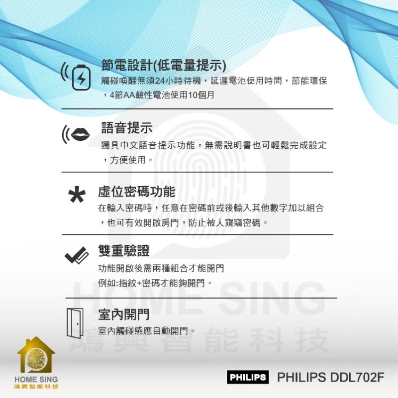 飛利浦智能鎖DDL702-8HW人臉辨識 指紋 密碼 鑰匙