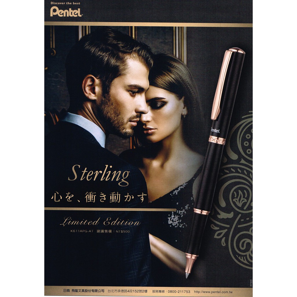 飛龍 Pentel Sterling K611APG-AT 限量版 黑軸玫瑰金 鋼珠筆 - 耕嶢工坊
