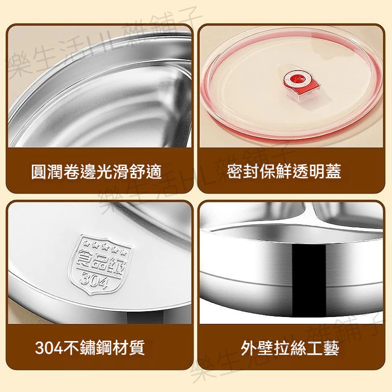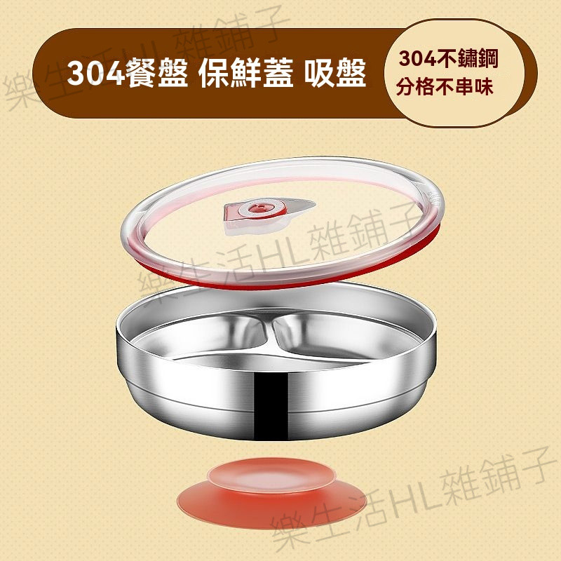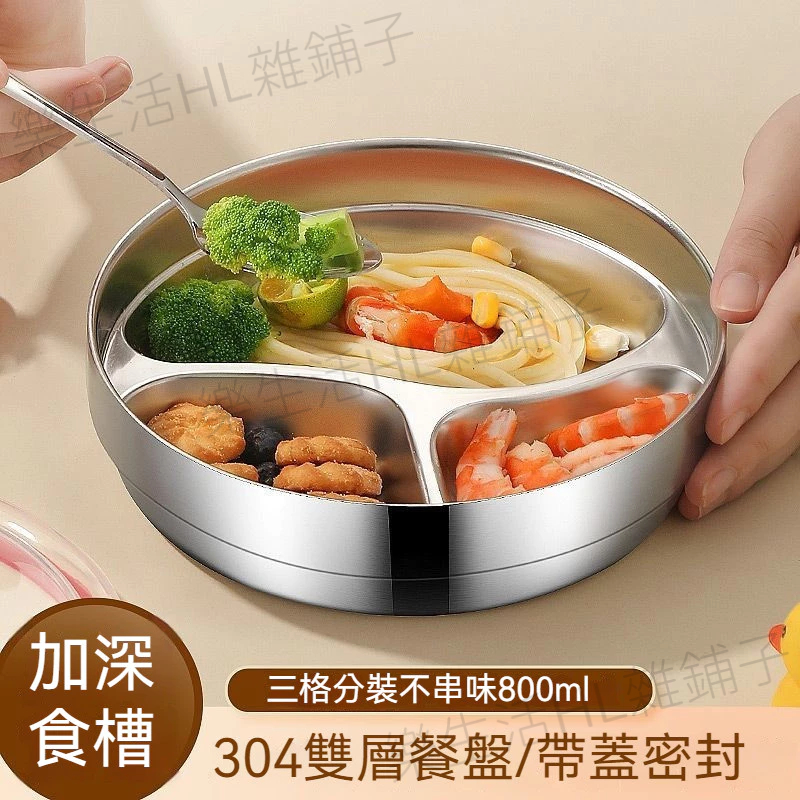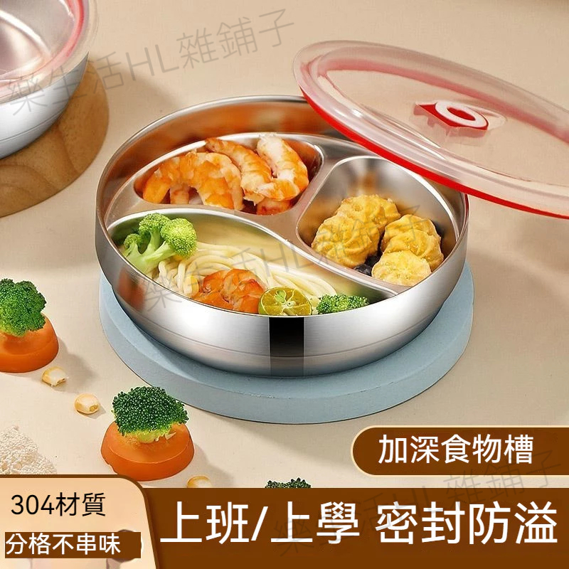 食品級304不銹鋼分格餐盤 不鏽鋼保鮮盒 食物保鮮盒 圓形便當盒 分格帶蓋 分隔飯盒 304圓形密封快餐盒 減脂減重定量