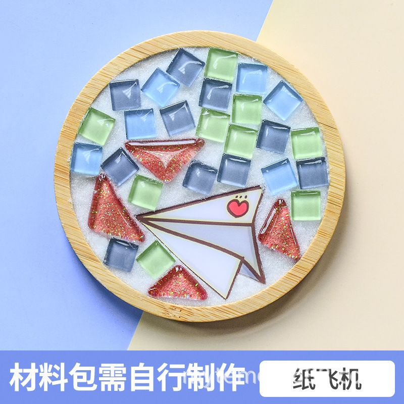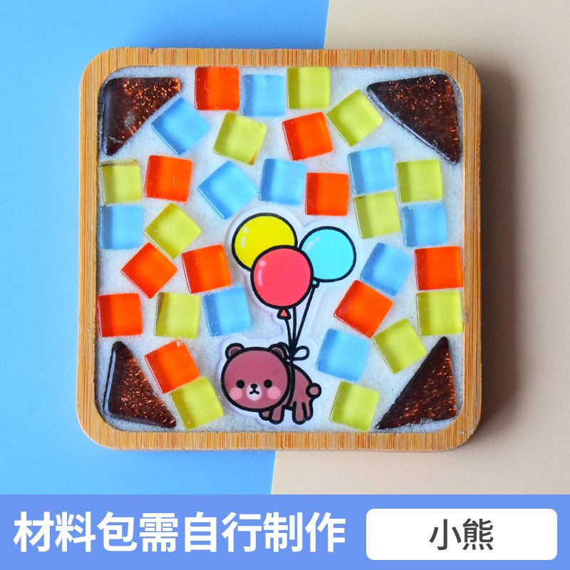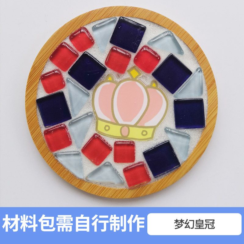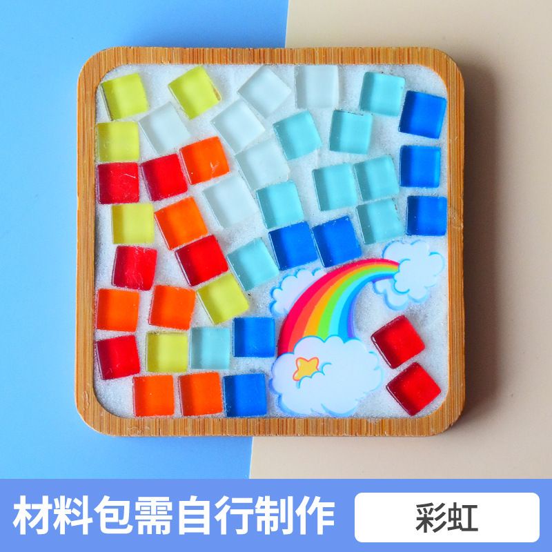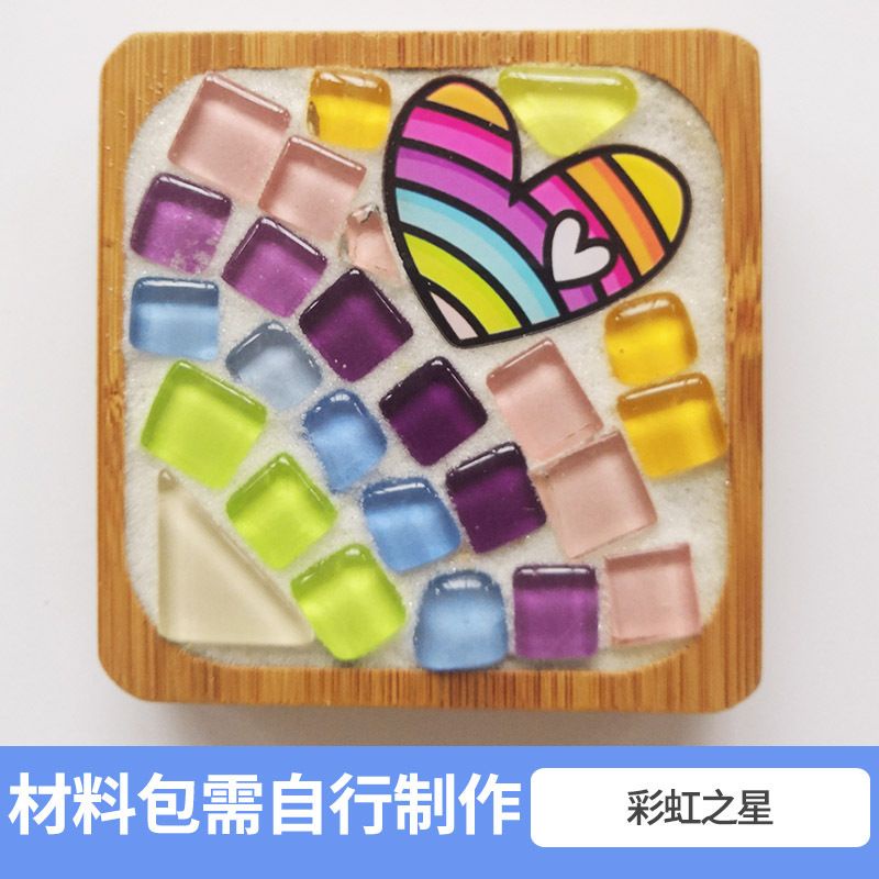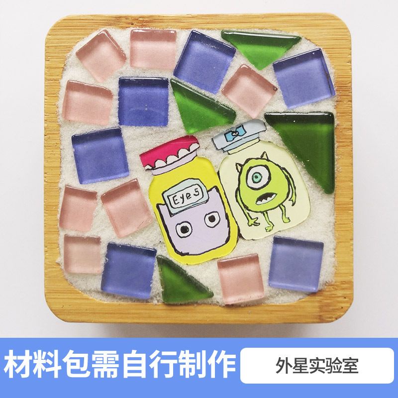 馬賽克diy杯墊材料包 創意裝飾品 竹杯墊 馬賽克磁磚材料包 玻璃磁磚 玩具暖場活動 交換禮物
