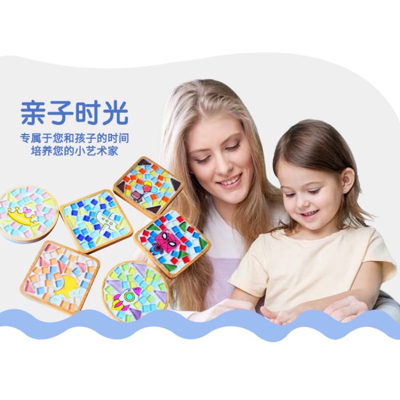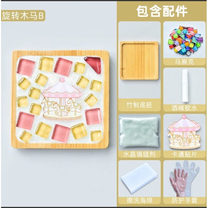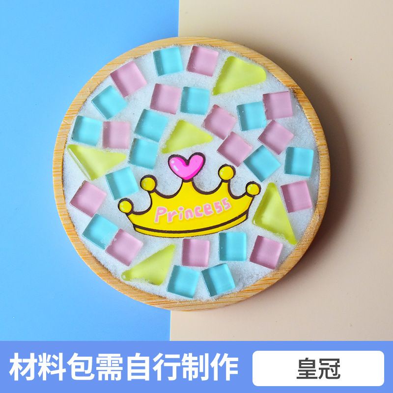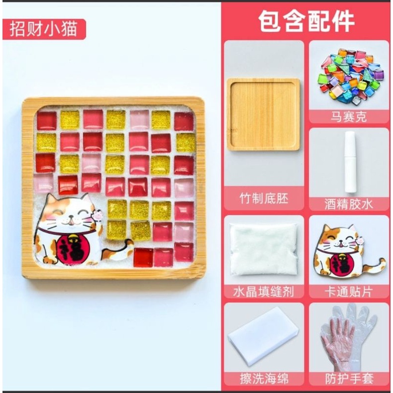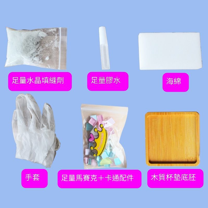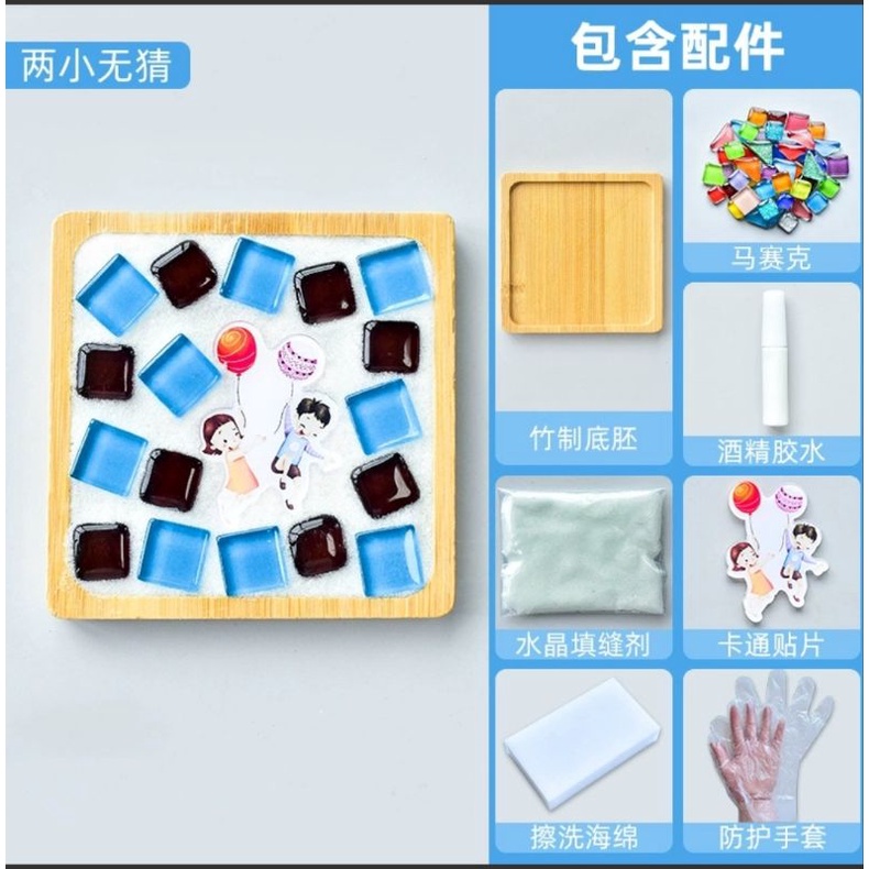馬賽克diy杯墊材料包 創意裝飾品 竹杯墊 馬賽克磁磚材料包 玻璃磁磚 玩具暖場活動 交換禮物