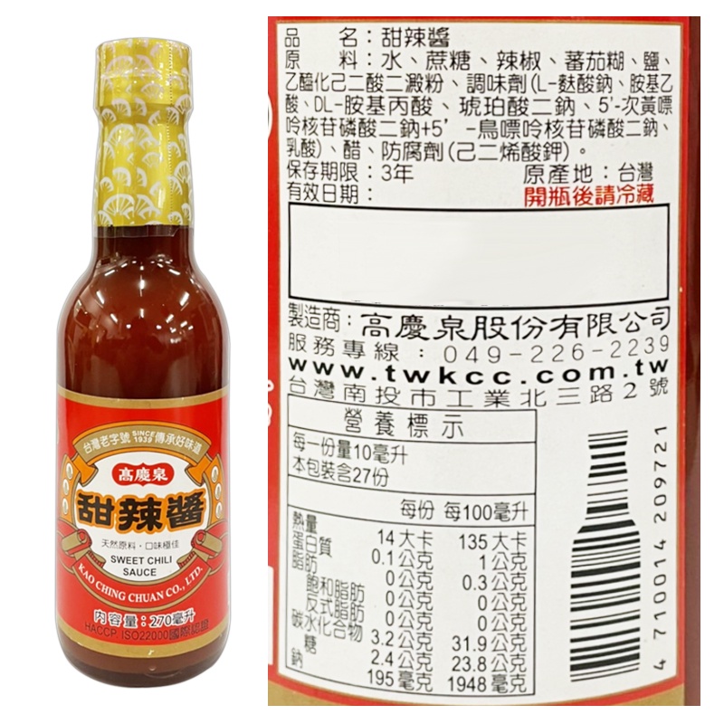 高慶泉 甜辣醬 / 蒜蓉醬油膏 270ml 辣醬 調味醬 沾醬 醬油膏 炒麵 粽子沾醬
