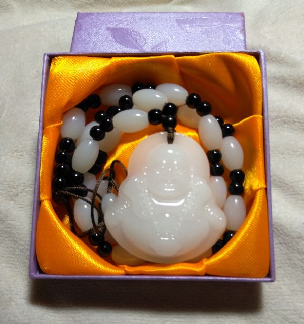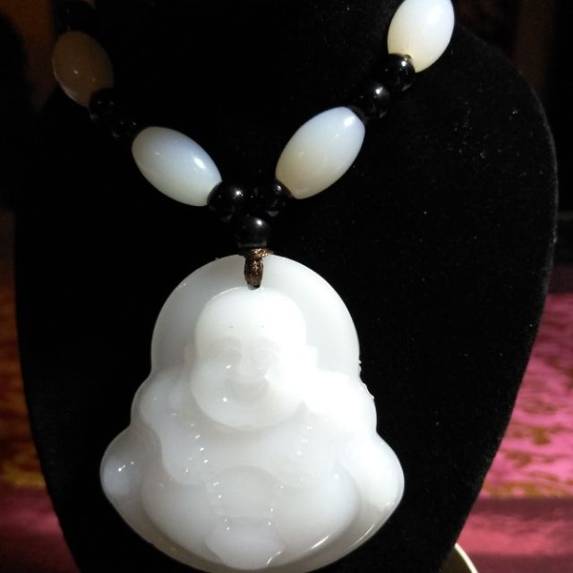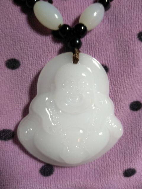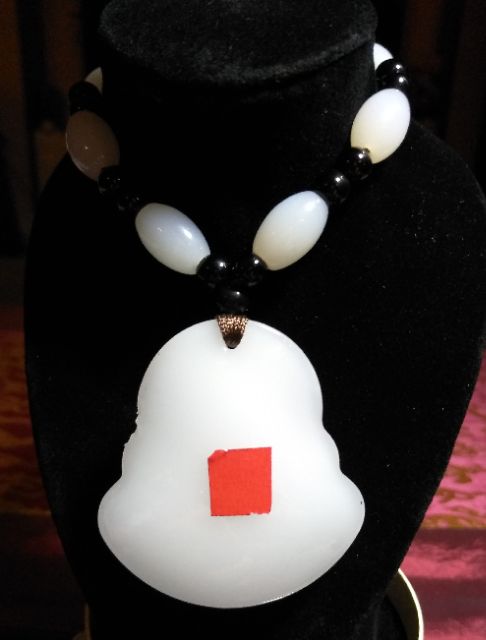 💗高檔真品!阿富汗白玉/漢白玉彌勒佛(細工雕刻、家居風水、工藝擺件、精品收藏)圓珠項鍊/玉石掛飾GB-642220