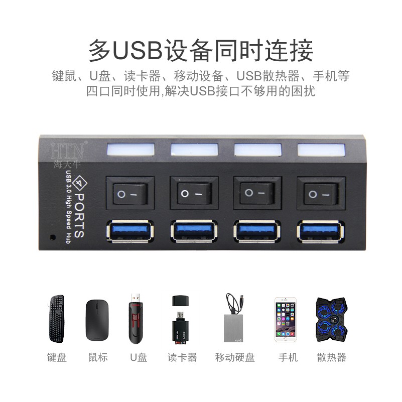 高速USB 3.0 HUB專用變壓器 獨立開關(台灣24H出貨)4port 4口 4孔 集線器 分線器 擴充槽