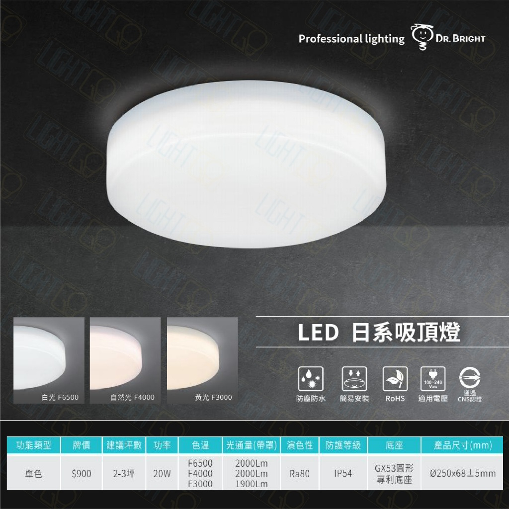 高CP款🌻 亮博士 LED 20W 日系吸頂燈 單色溫款 簡約吸頂燈 素面款 IP54 適用2-3坪【保固一年】