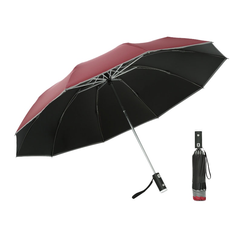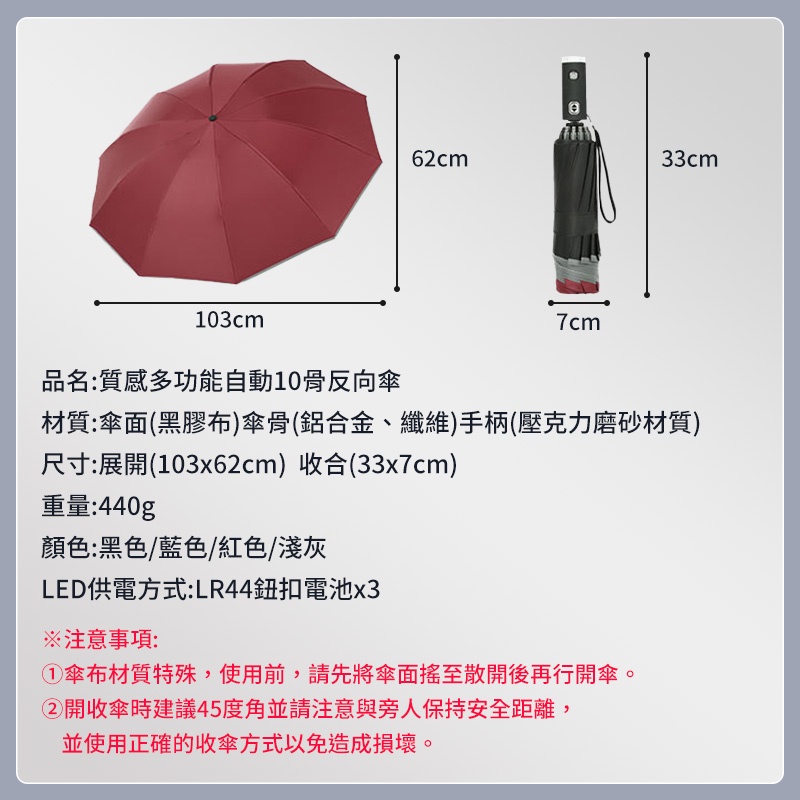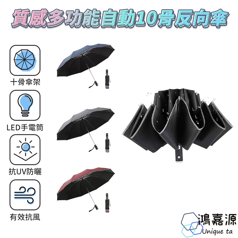 鴻嘉源UV-10 LED自動10骨反向傘 阻絕紫外線 鋁合金骨架 LED燈照明 一鍵開收 摺疊雨傘 遮陽傘 防曬傘 雨傘