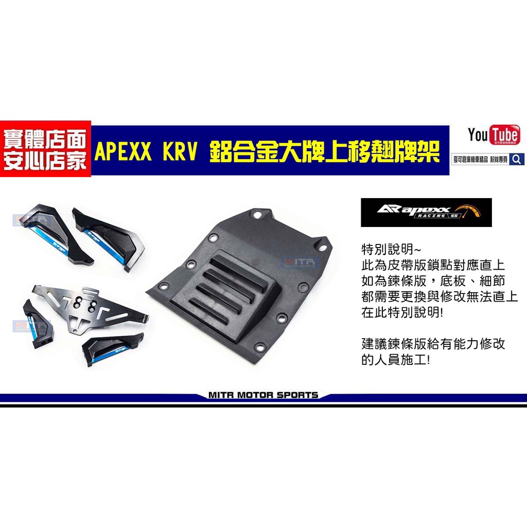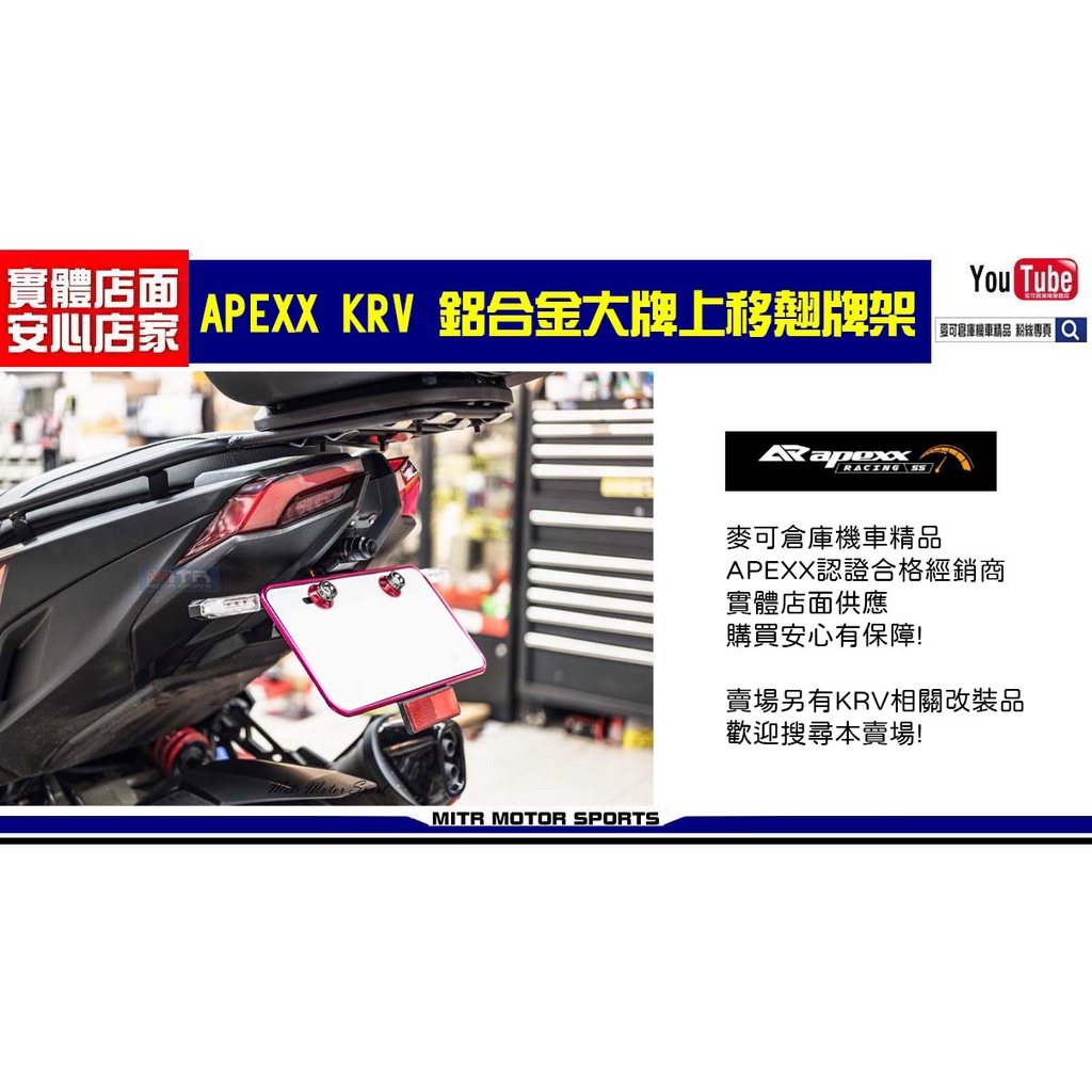 麥可倉庫機車精品【APEXX KRV180 新款 鋁合金 大牌上移 短牌架 翹牌架 大牌架】