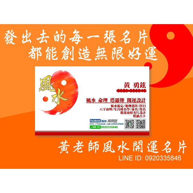 黃老師風水開運名片--開啟無限商機--名片設計製作