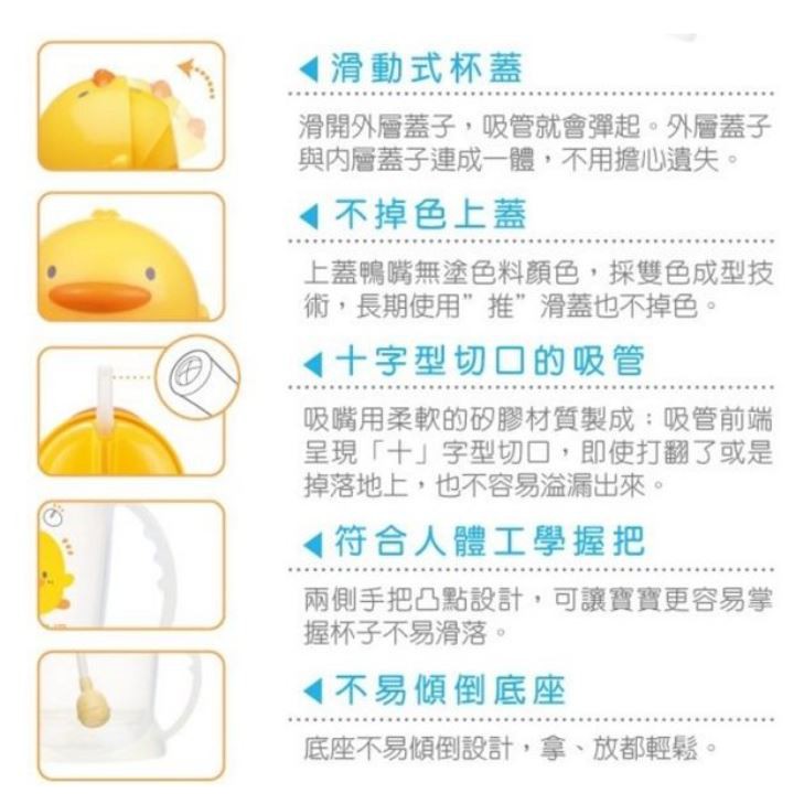 黃色小鴨 自動吸管PP滑蓋練習杯250ml【宜兒樂】