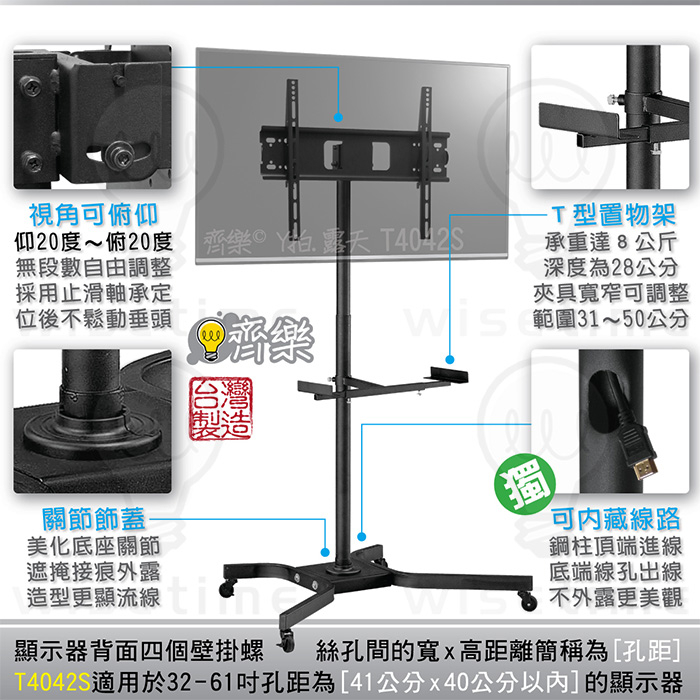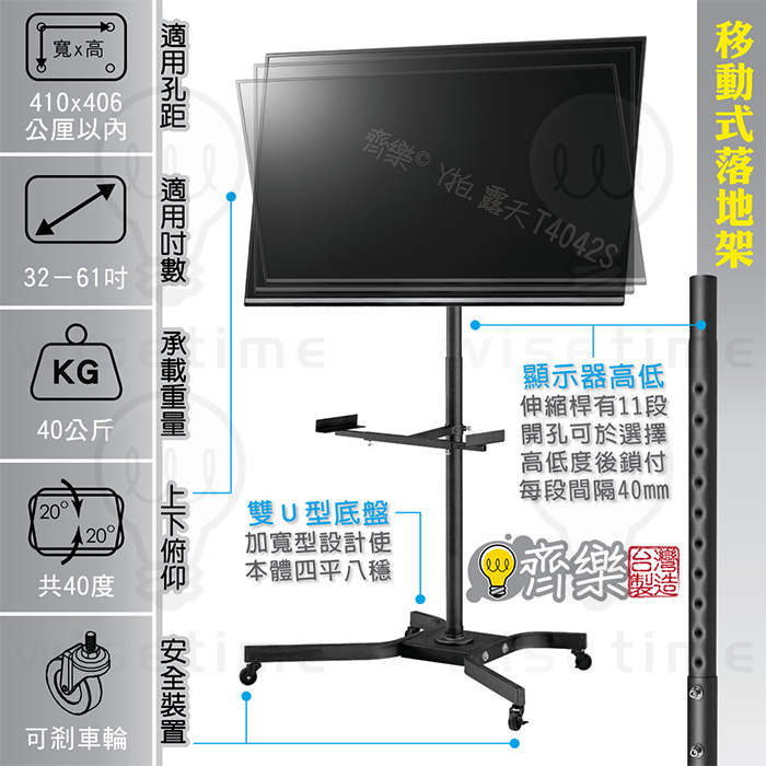 齊樂台北~32-61吋電視移動架/直立架/落地架/推車T4042S-適用SONY.TOSHIBA.SHARP.VIZIO