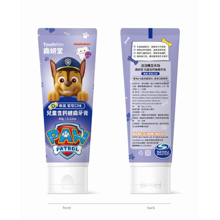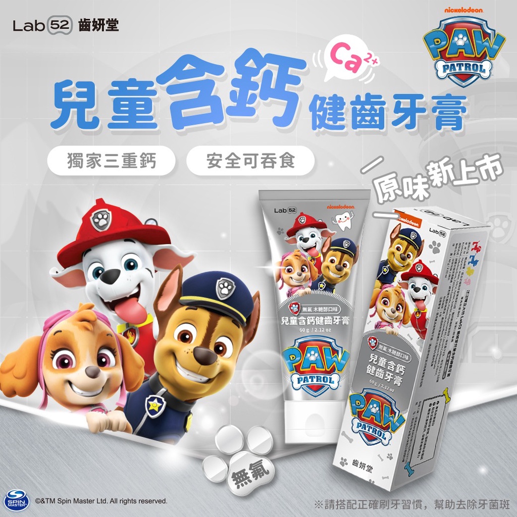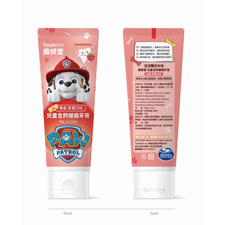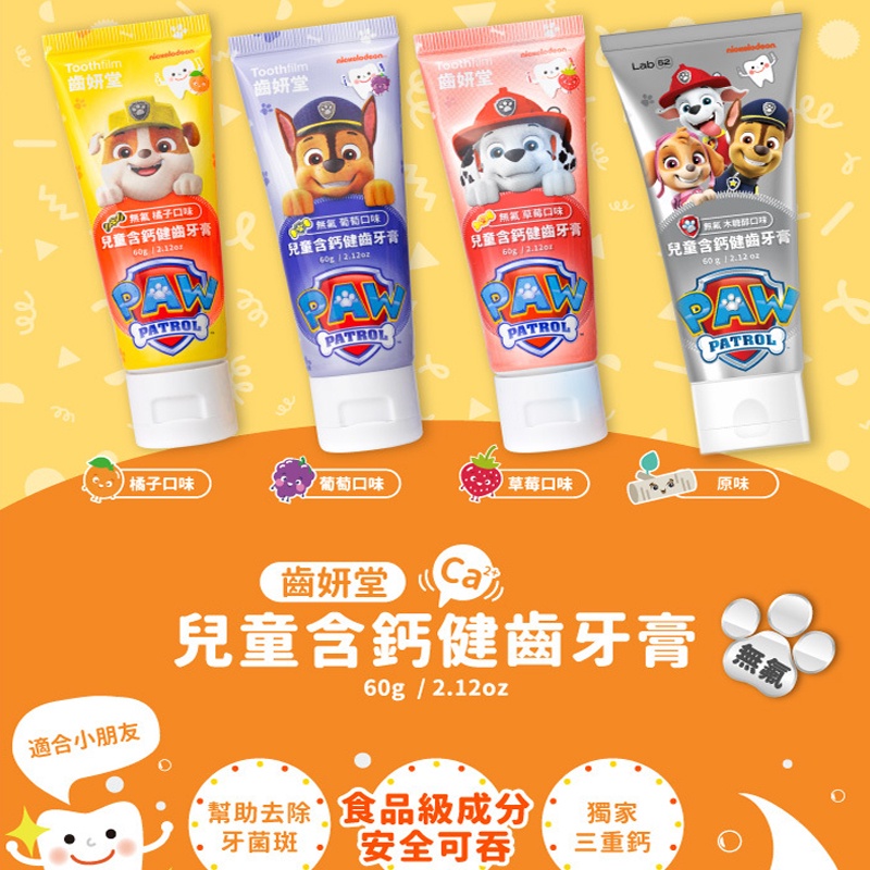 齒妍堂 汪汪隊立大功 兒童含鈣健齒牙膏 60g 無氟牙膏 安全可吞 兒童牙膏 草莓 葡萄 橘子